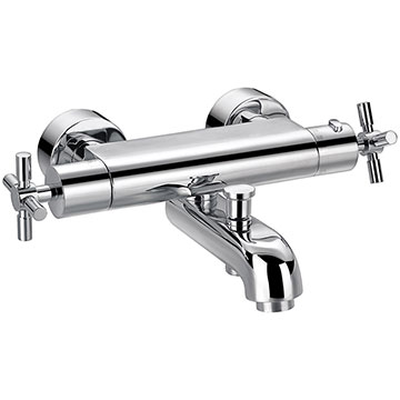 Flova XL Exposed Thermostatic Chrome Bath Shower Mixer Tap with Diverter - Crosshead Handles