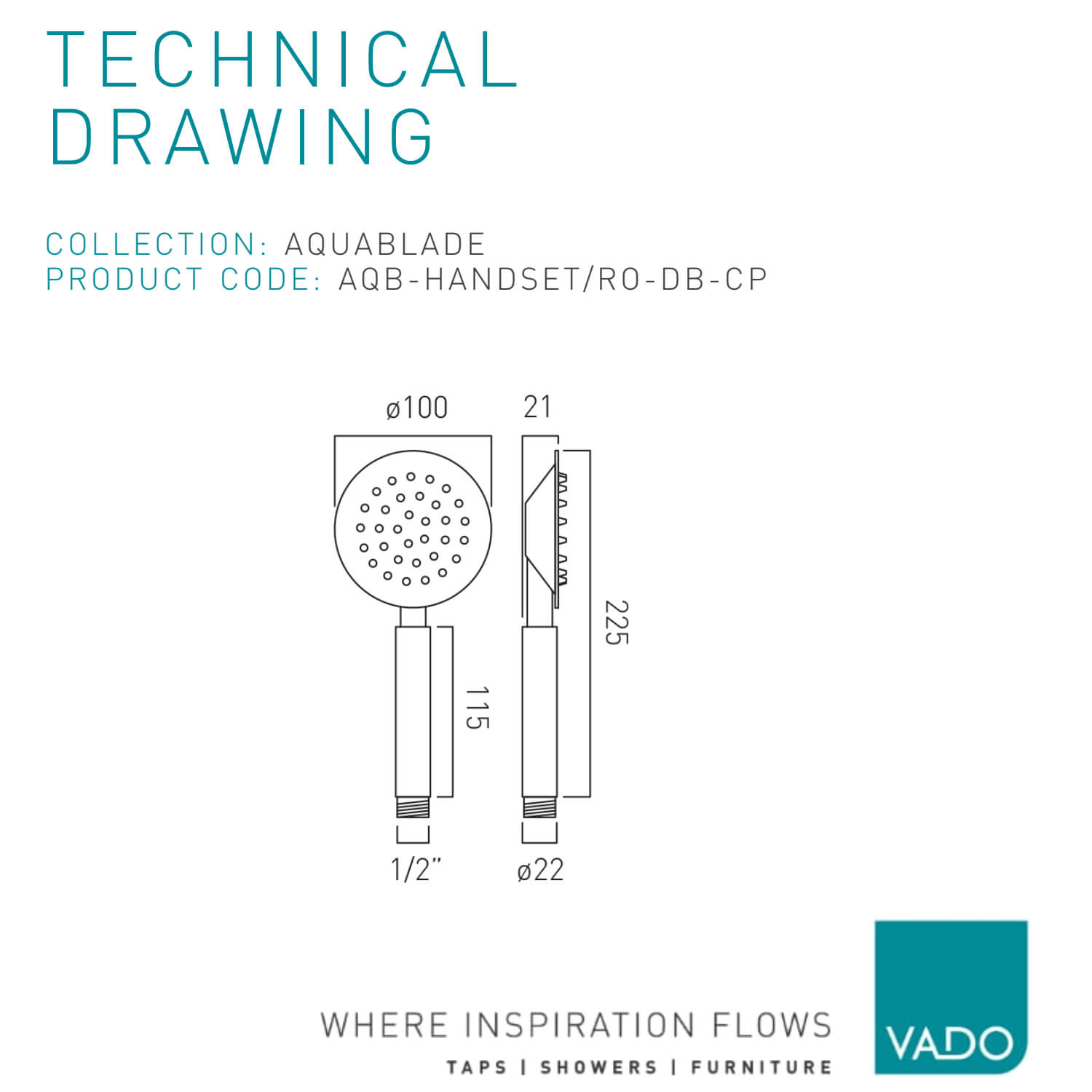 Vado Aquablade Polished Chrome Round Shower Handset with Cool Touch Handle - Single Mode