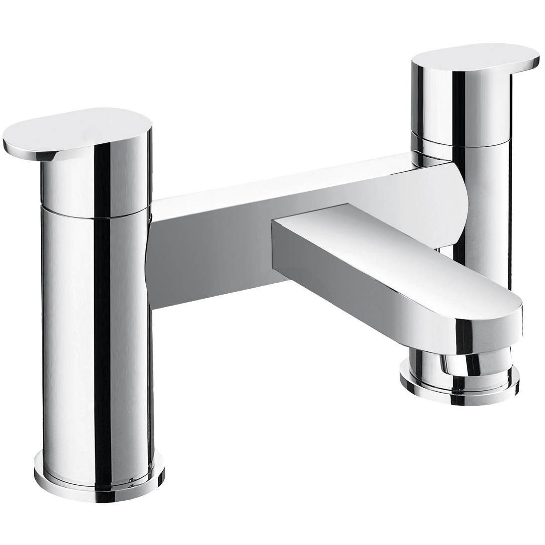 Flova Smart Contemporary Bridge Bath Mixer Tap - Flat Handles - Deck Mounted