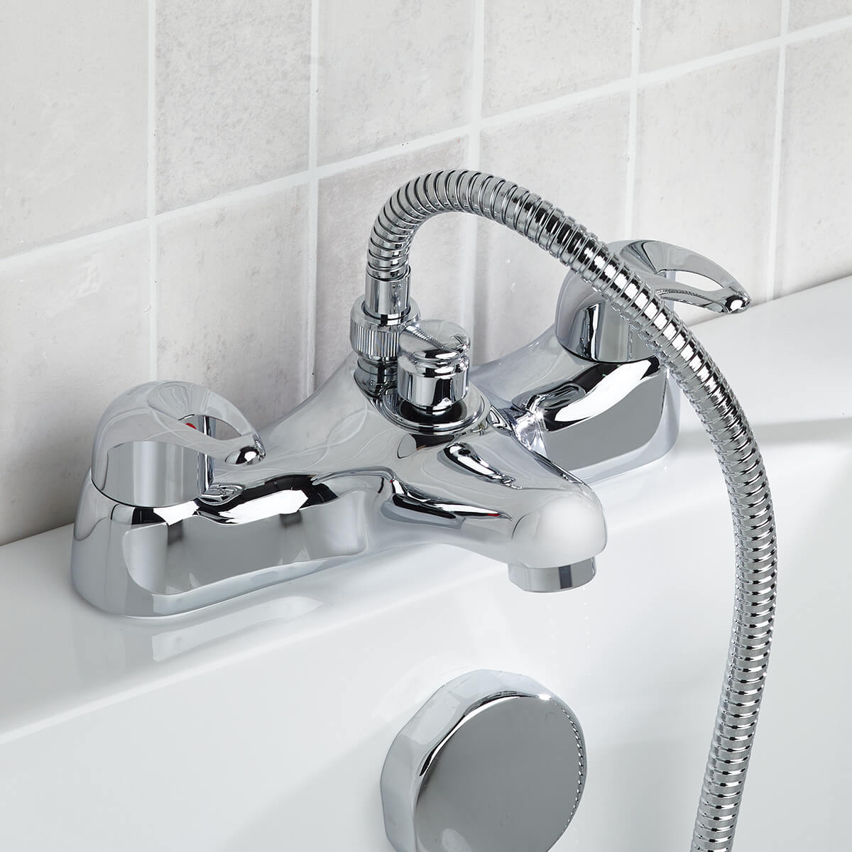 Bristan Java Deck Mounted Chrome Bath Mixer Tap with Shower Handset and Hose - Loop Handles
