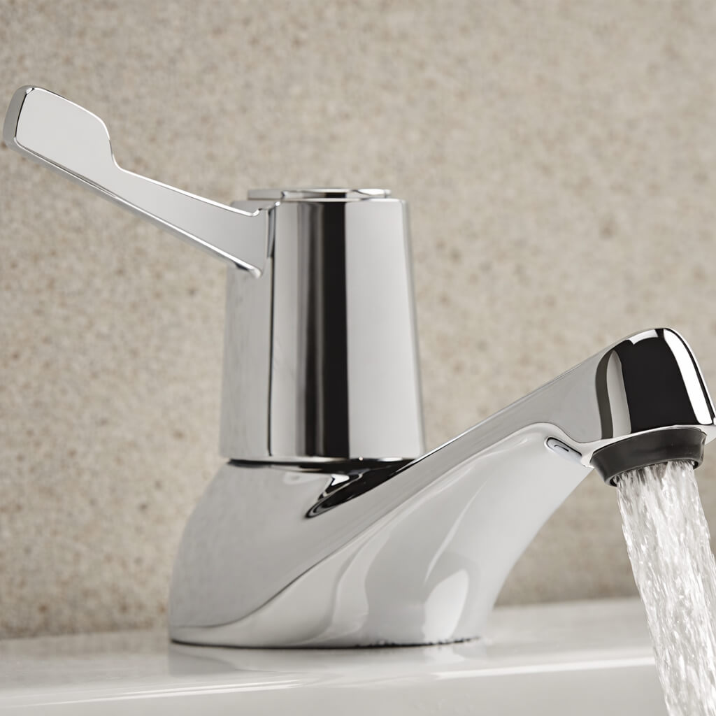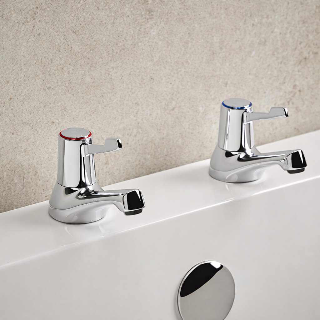 Bristan Pair Of Deck Mounted Bath Taps With 3 Inch Levers is wonderfully designed, amplifying your bathrooms look. It is supplied in pairs. It comes in an amazing chrome finish that gives the taps a polished look and acts as a protectant. It is crafted using superior quality brass material. It has a contemporary and chic look. It has got a 1/4 Quarter turn featuring a 3/4-inch ceramic disc valve.