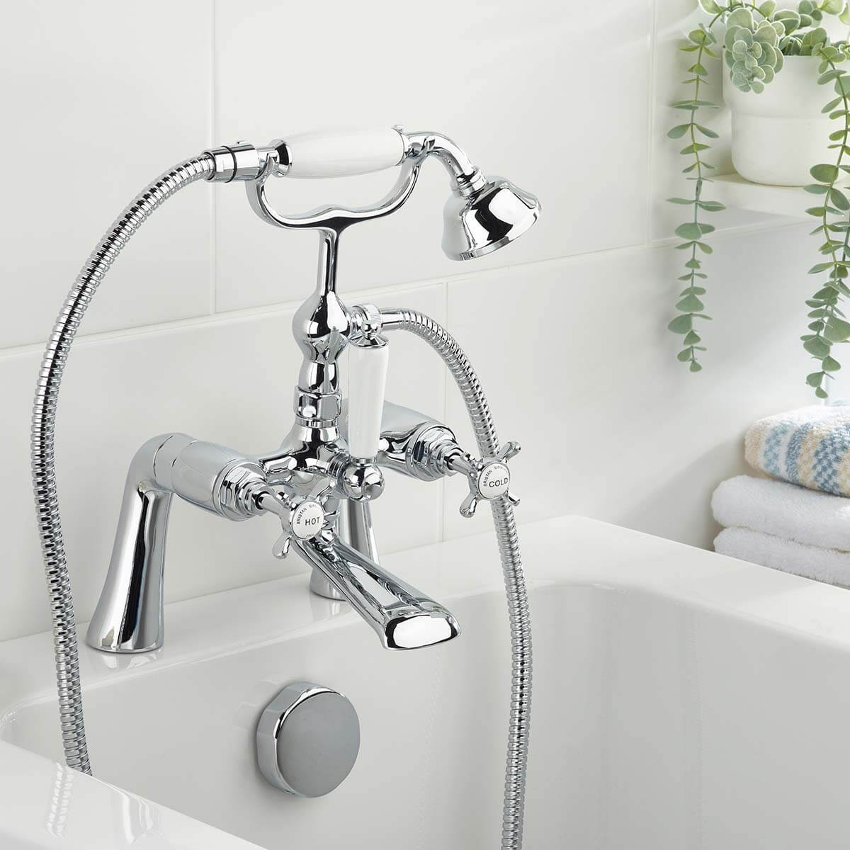 Bristan 1901 Traditional Chrome Bath Mixer Tap with Shower Handset and Hose - Crosshead