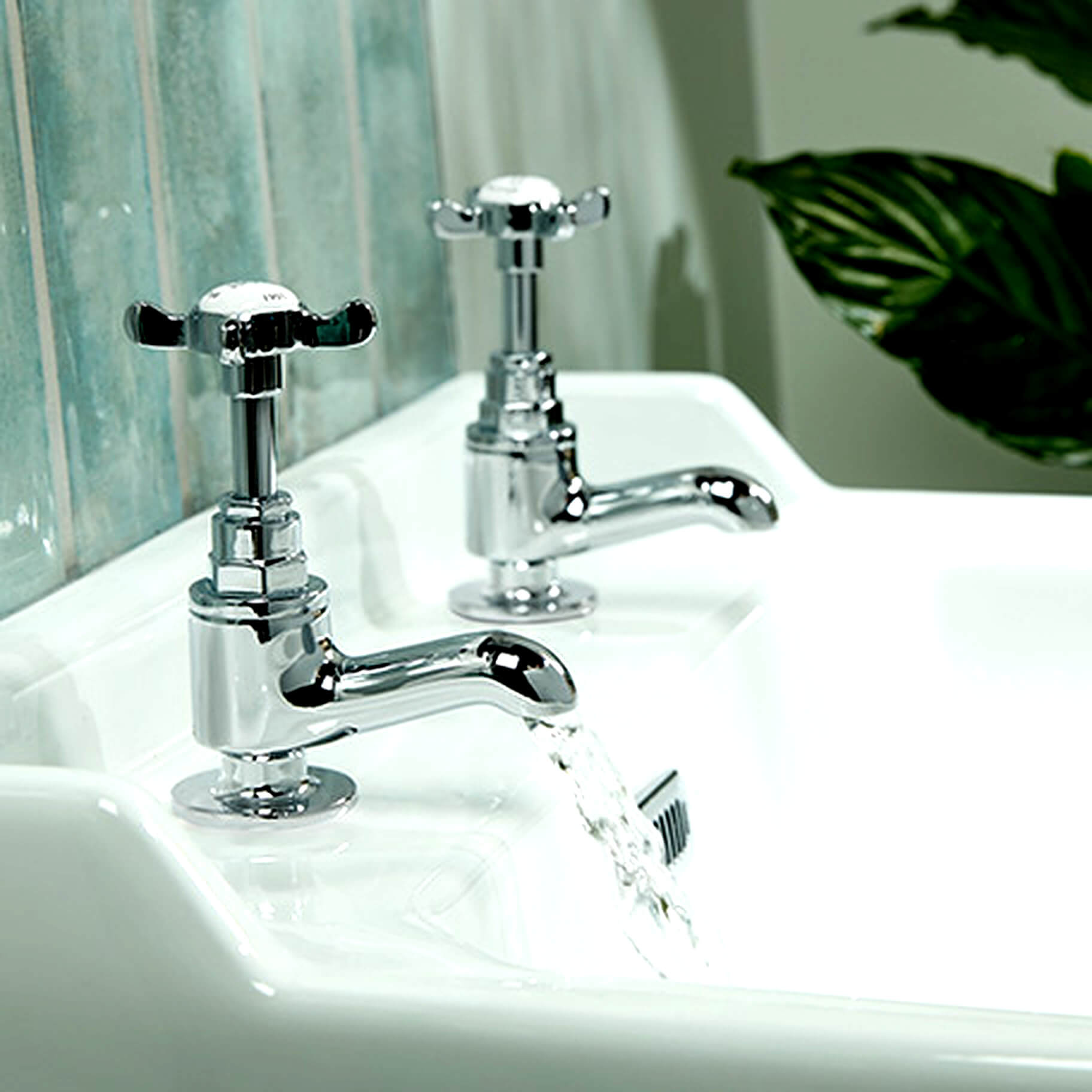 Bristan 1901 Pair of Chrome Traditional Basin Taps - Crosshead Handles