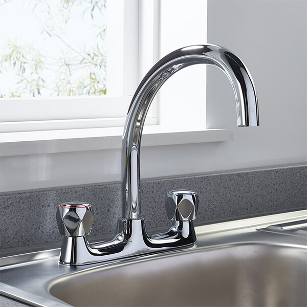 Bristan Value Club Dual-Flow Chrome Kitchen Mixer Tap with Curved Spout - Knob Handles