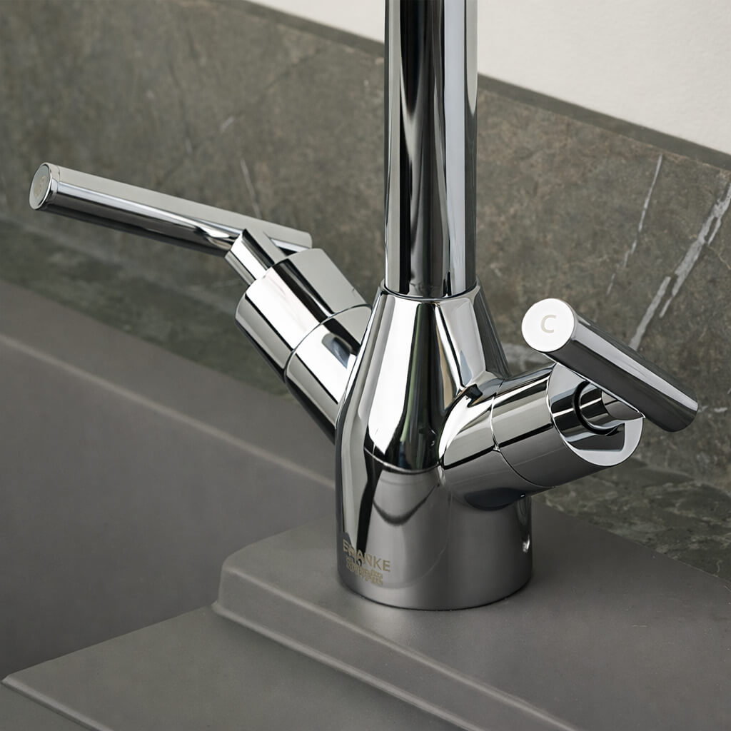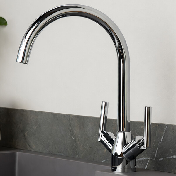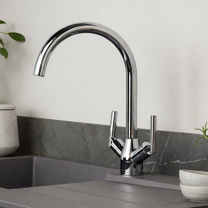 Bristan Chive Chrome Kitchen Mixer Tap with Curved Spout and Easyfit Base - Stick Handles