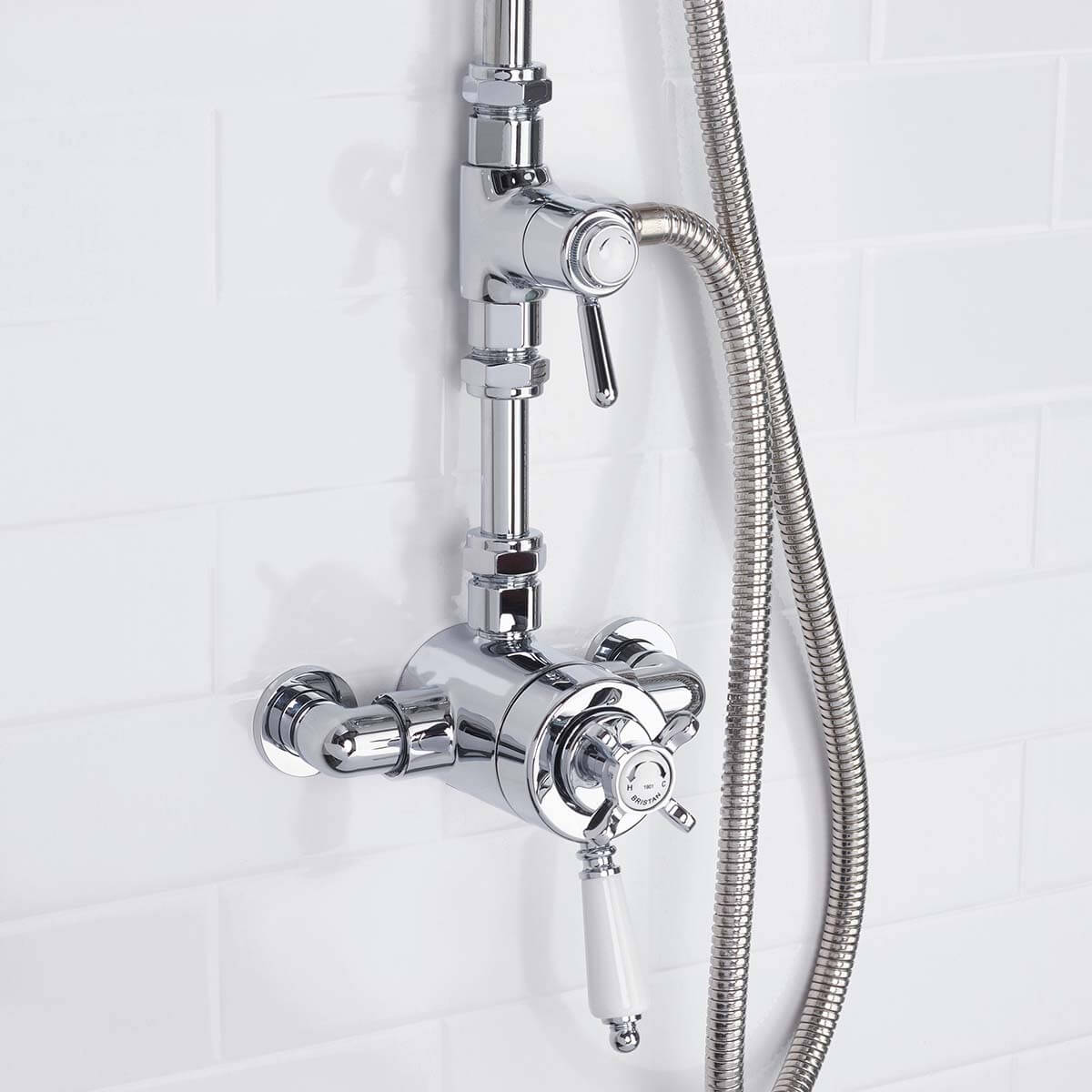 Bristan 1901 Thermostatic Exposed Dual Control Shower Valve With Diverter And Rigid Riser Kit