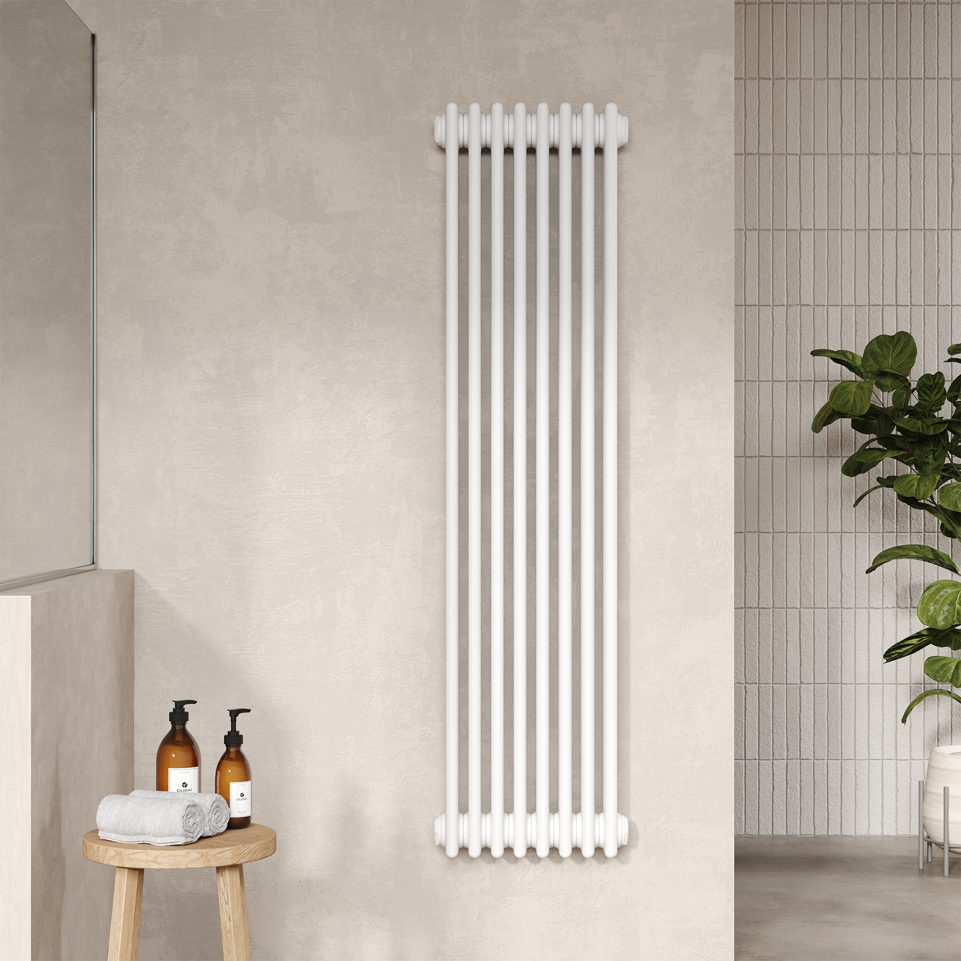 Nuie Colosseum Vertical 3 Column Traditional White Radiator - Steel