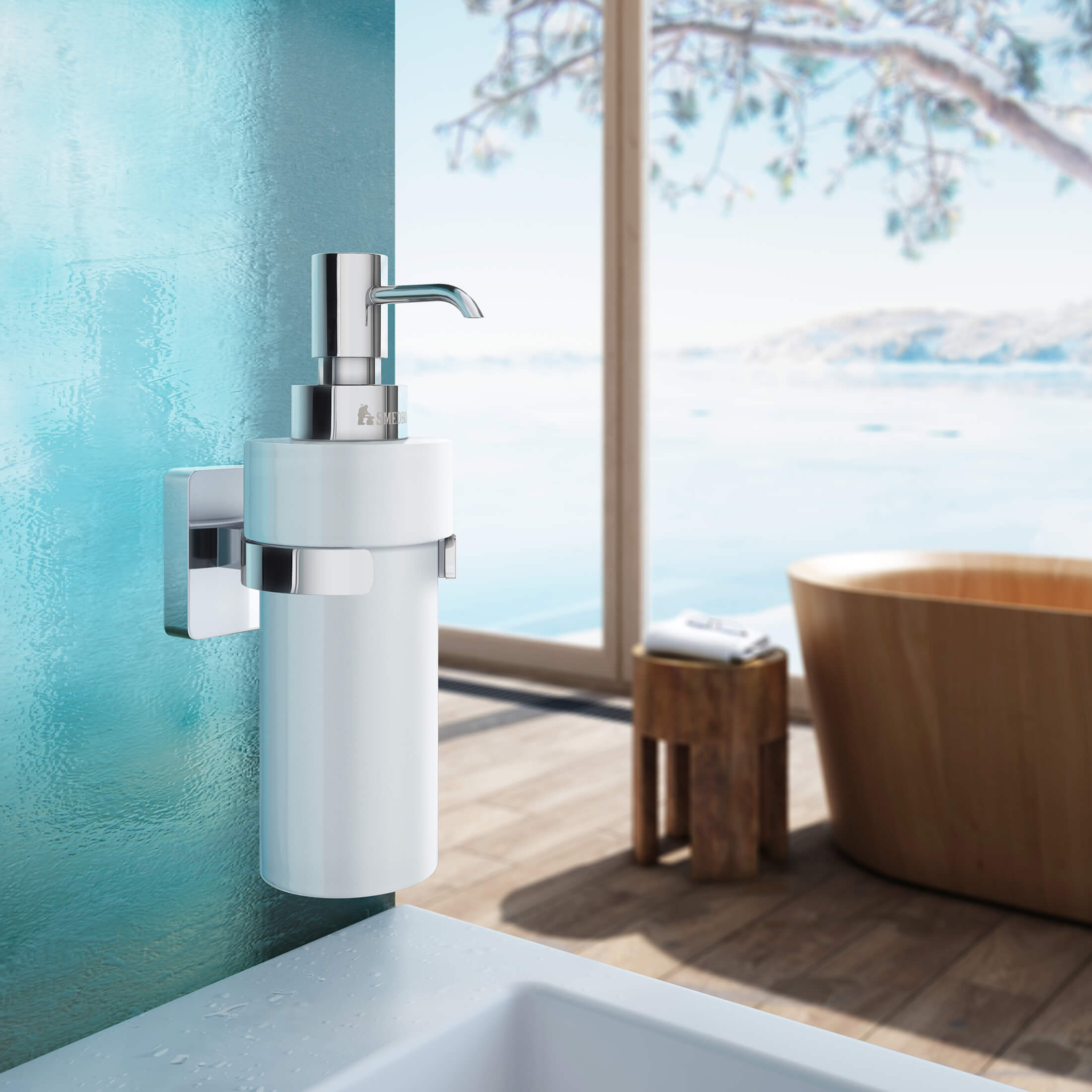 Smedbo Ice Polished Chrome Holder With Porcelain Soap Dispenser.