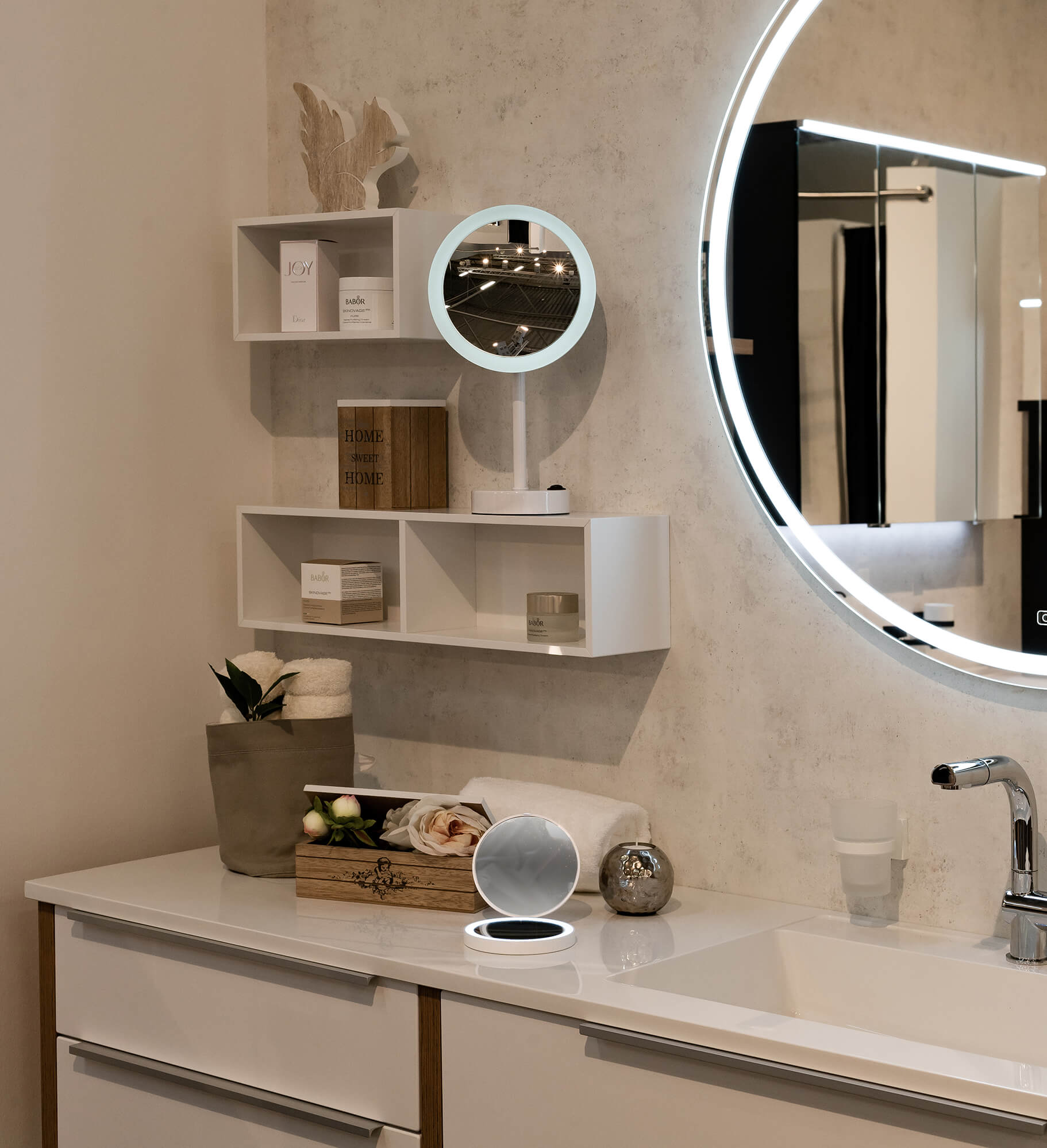 Smedbo Outline Freestanding Round LED Shaving And Make-Up Mirror - 200 x 200mm