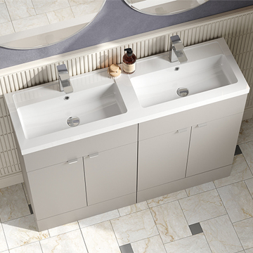 Hudson Reed Fusion Floorstanding His and Her Vanity Unit with Twin Basin - 4 Door - 1205 x 904mm