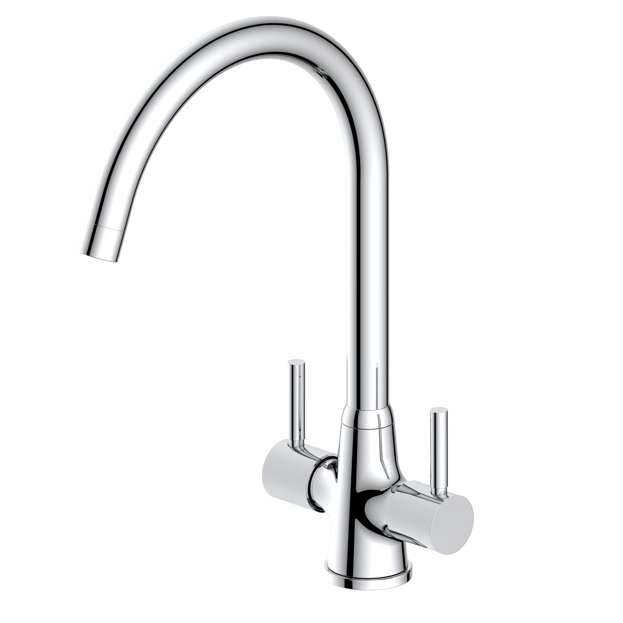 Reginox Thames Chrome Kitchen Sink Mixer Tap with Swan Neck Swivel Spout - Stick Handles
