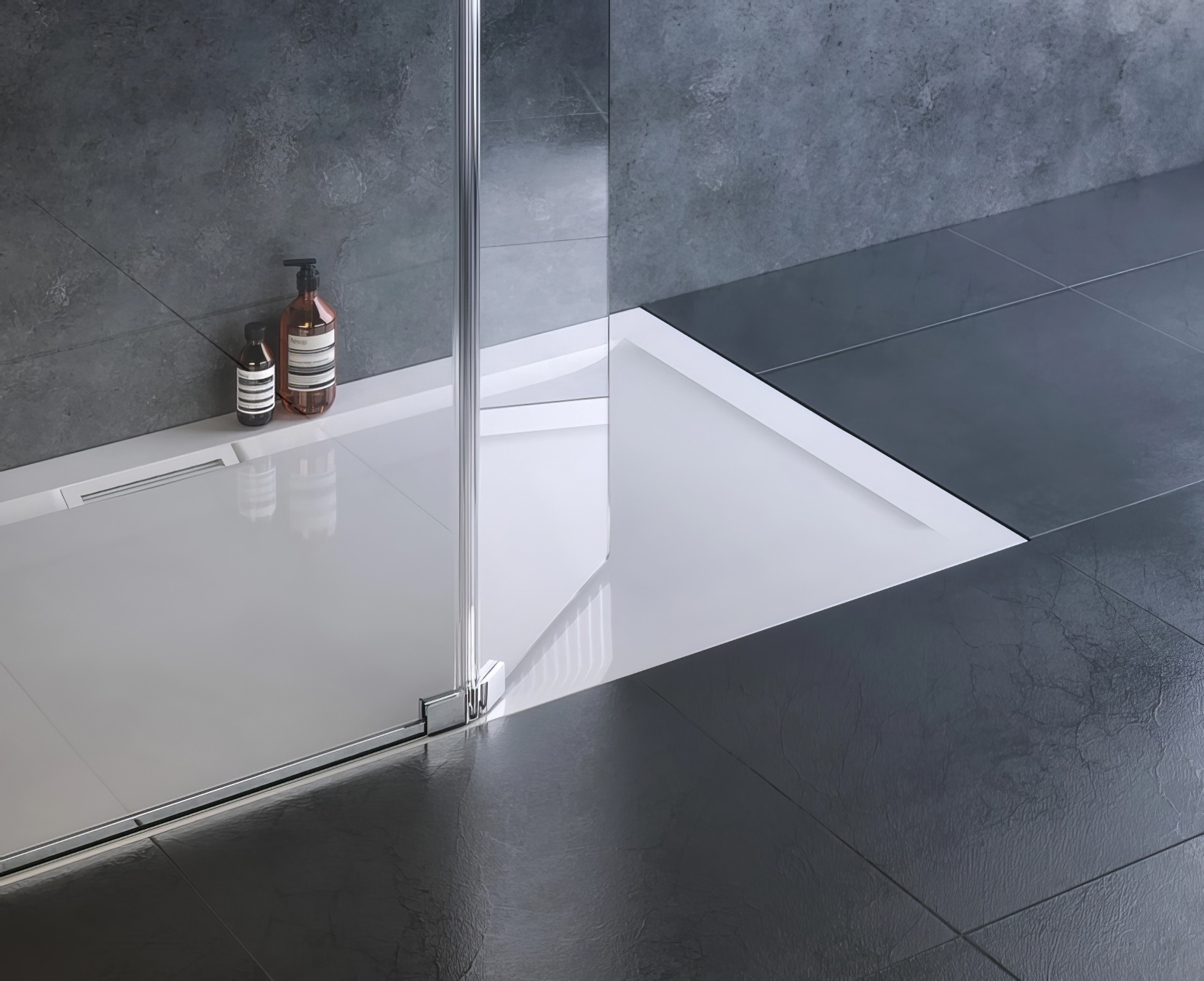 Modern, ultra low-level tray with discrete waste. This is simply beautiful and formed an ant part in transforming our shower room into a work of art.