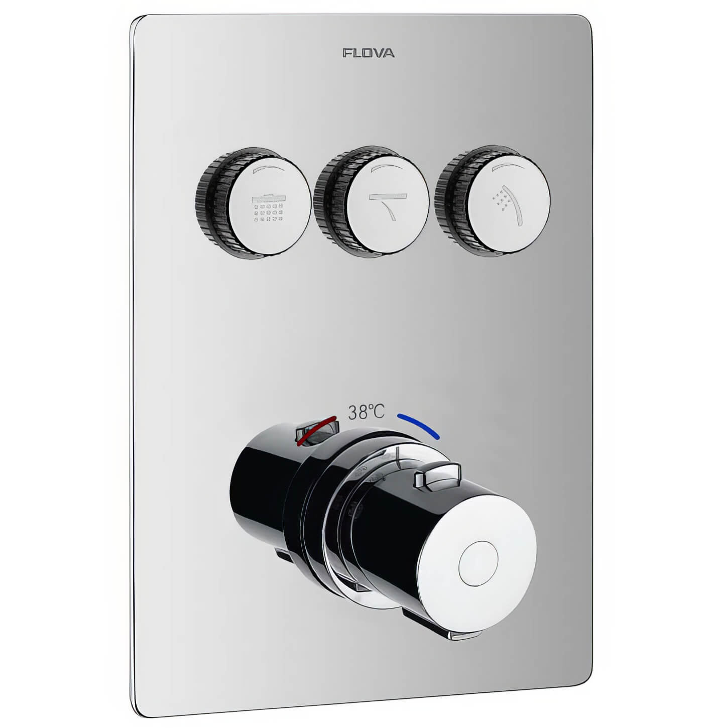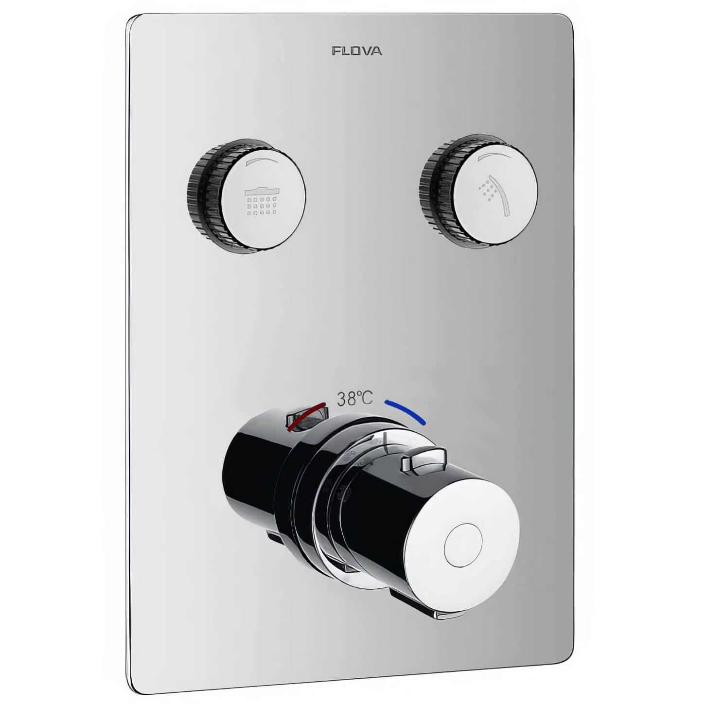 Flova Annecy Concealed Thermostatic Chrome Shower Valve - Square Trim - 2 or 3 Controls