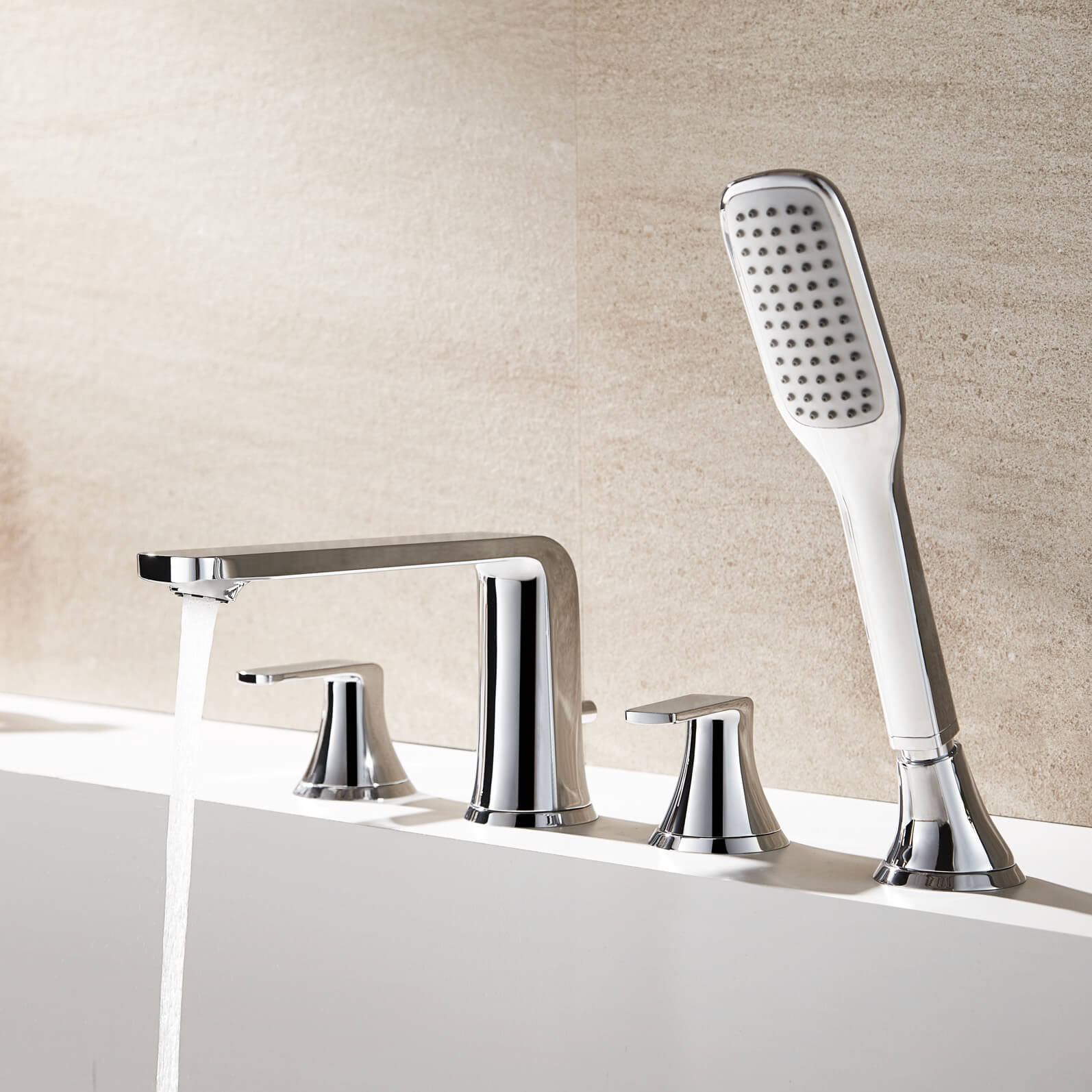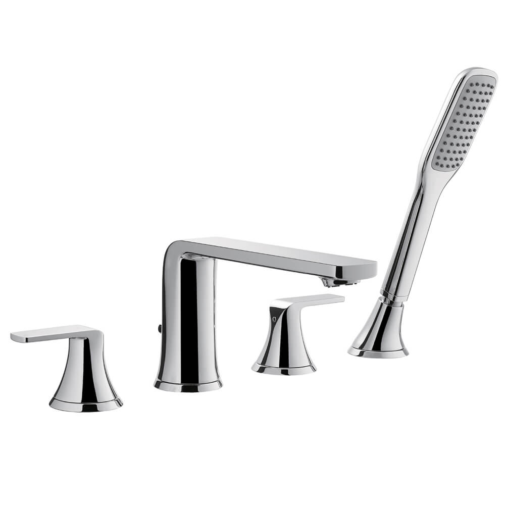 Flova Fusion 4 Hole Contemporary Bath Shower Mixer Tap with Handset - Flat Handles