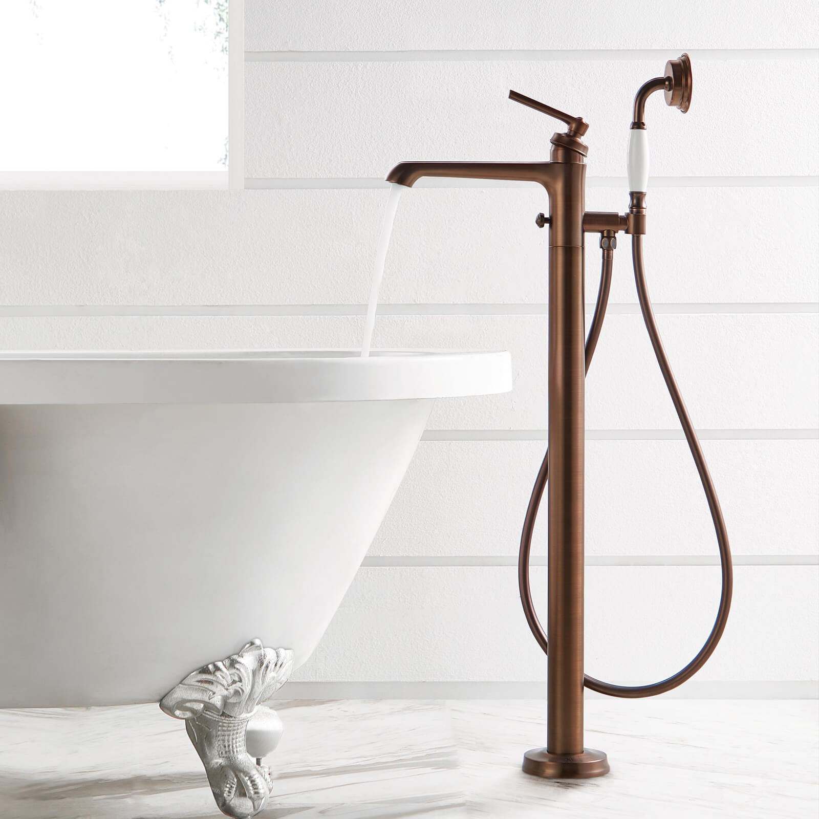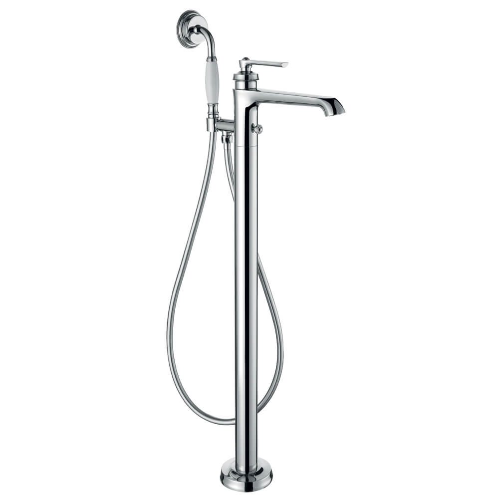 Flova Liberty Floorstanding Bath Mixer Tap with Shower Handset and Hose - Stick Handle
