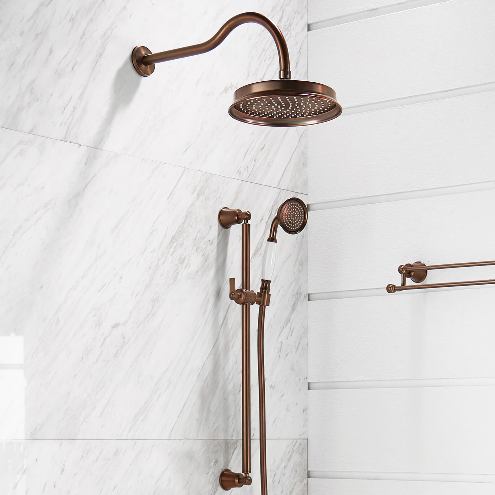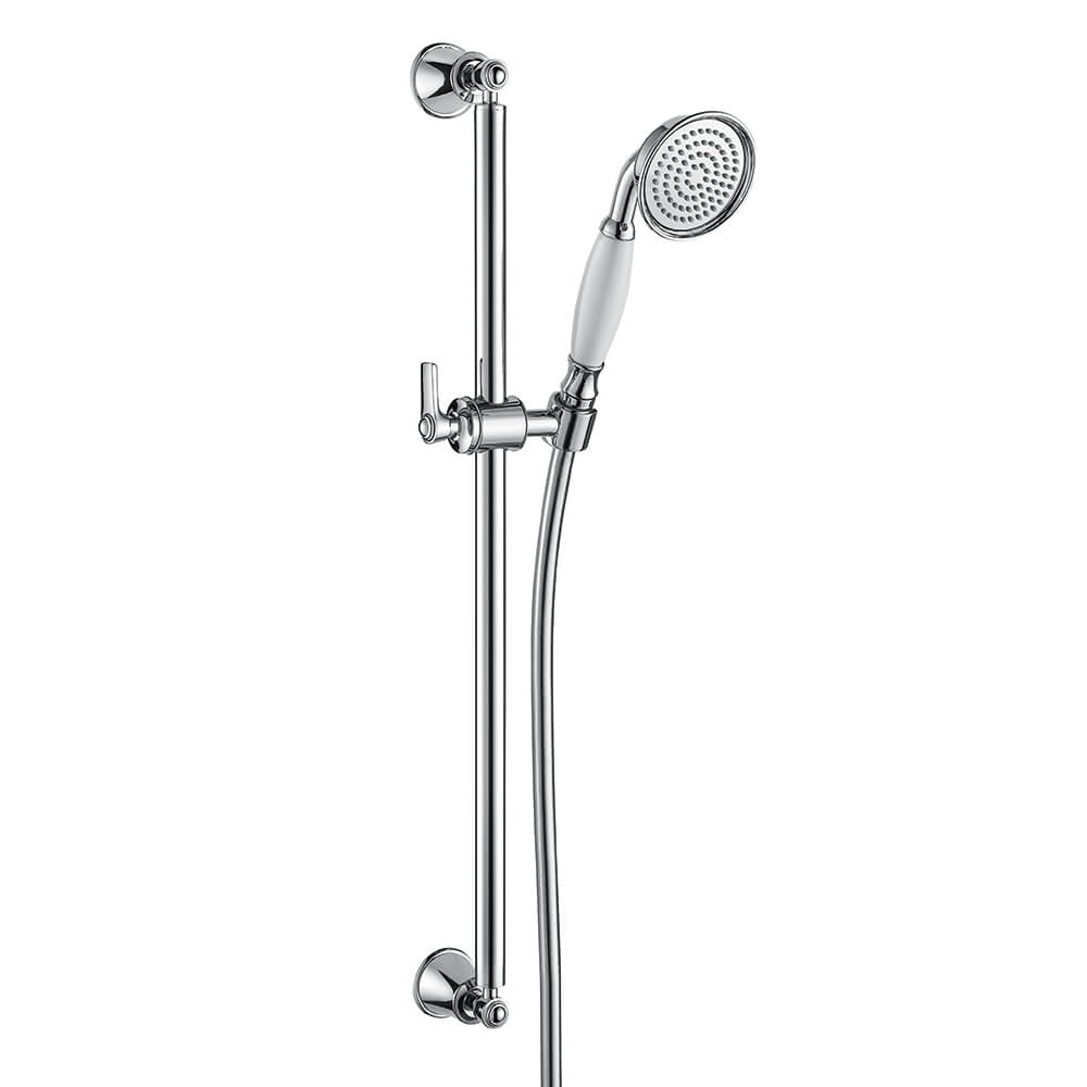 Give your bathroom a stylish, classic finishing touch with the handset style of Flova Liberty Slide Rail with Shower Set. The product features a riser rail with a sliding feature that can hold the hand shower and showerhead at the perfect height for you. The product has an overall height of 600 millimetres, so that you can be sure it can sit at the best height no matter how tall you are. The handset sits on a smooth and sleek 1.5-meter hose that wont get tangled up when you use it. Made from solid brass, it comes with the promise of durable, longterm performance.