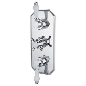 Niagara Arlington Thermostatic Concealed Shower Valve Traditional comes to you in 2 models, twin and triple valves-the twin model come with a single outlet while the triple valves have two outlets. This is a traditionally styled valve and concealed in installation for an excellent look. It features dual control-with separate controls for flow and control and has a thermostatic mechanism that maintains the showering temperatures at near-constant. Suitable for the medium and high pressure water system, it is backed by a 10 years guarantee from the manufacturers against manufacturing defects.