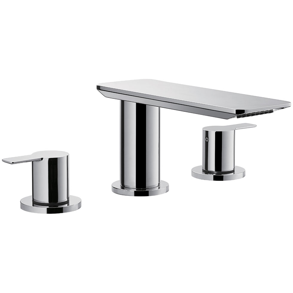 The Flova Spring 3 Hole Bath Filler Tap is a stylish and trendy unit that is especially suitable for installation with a modern or contemporary bathroom design. Made from solid brass material and coated in a long-lasting diamond chrome finish, this product is created to last through years of daily use with ease. Boasting a swivel spout, a Neoperl flow regulator and a truly unique appearance from top to bottom, this model is meant for secure, deck-mounted installation upon any compatible bath form. It is suitable for use within a high-pressure water system and remarkably easy to clean as well.