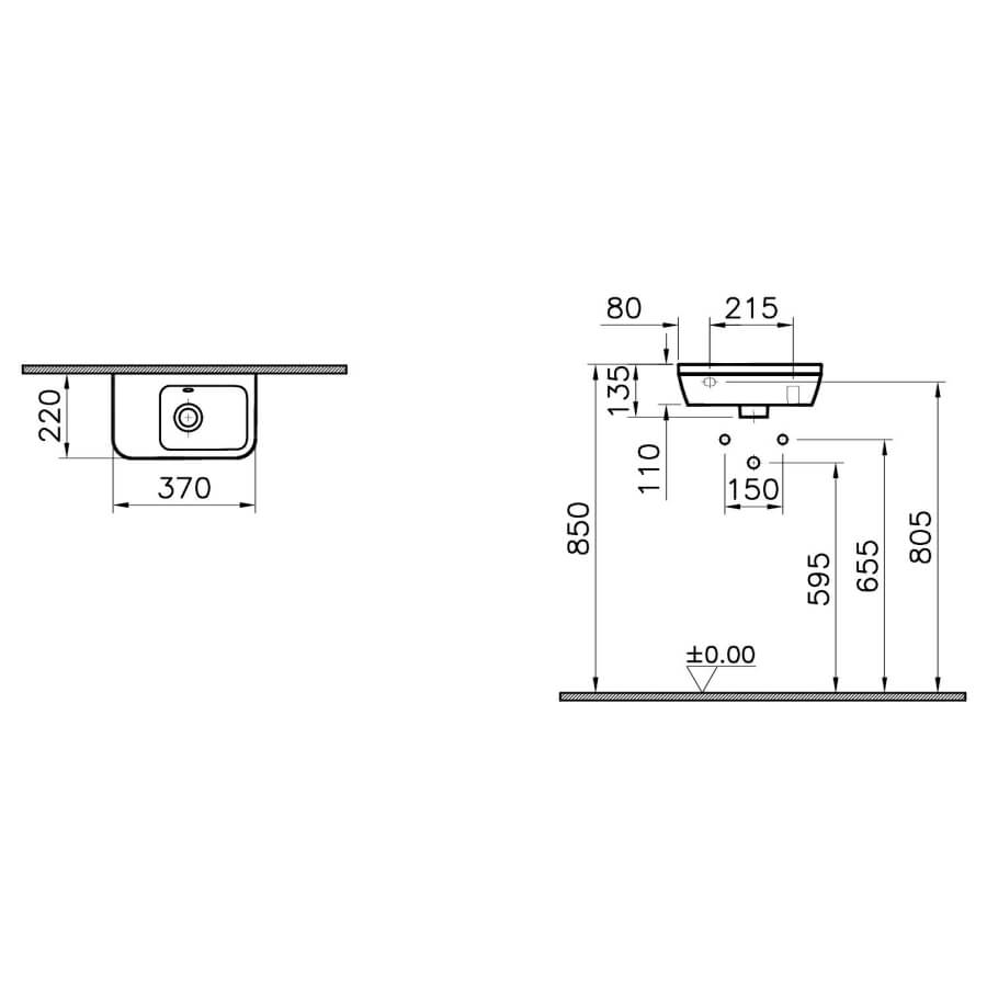 VitrA Integra Compact Wall Hung Basin With Overflow Hole