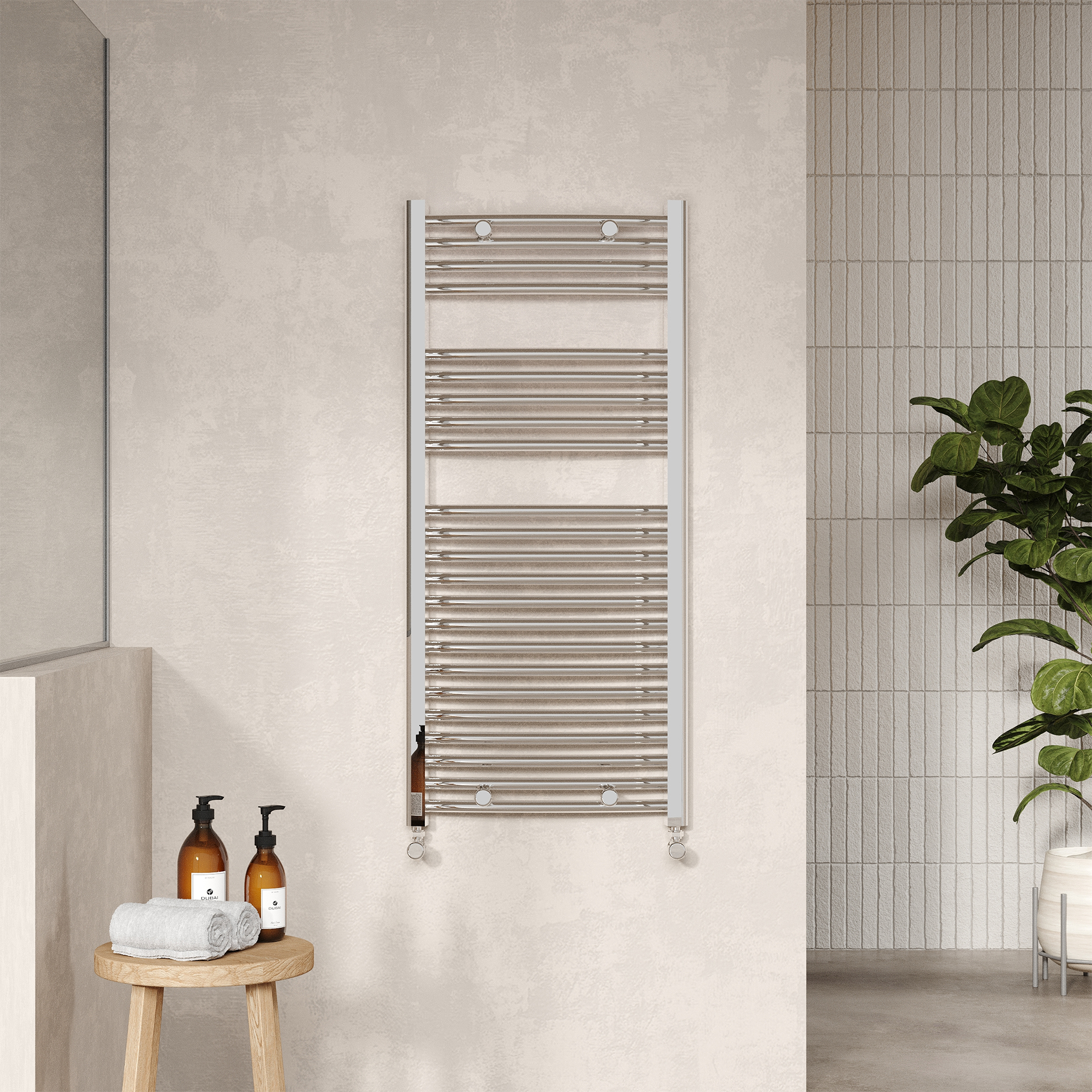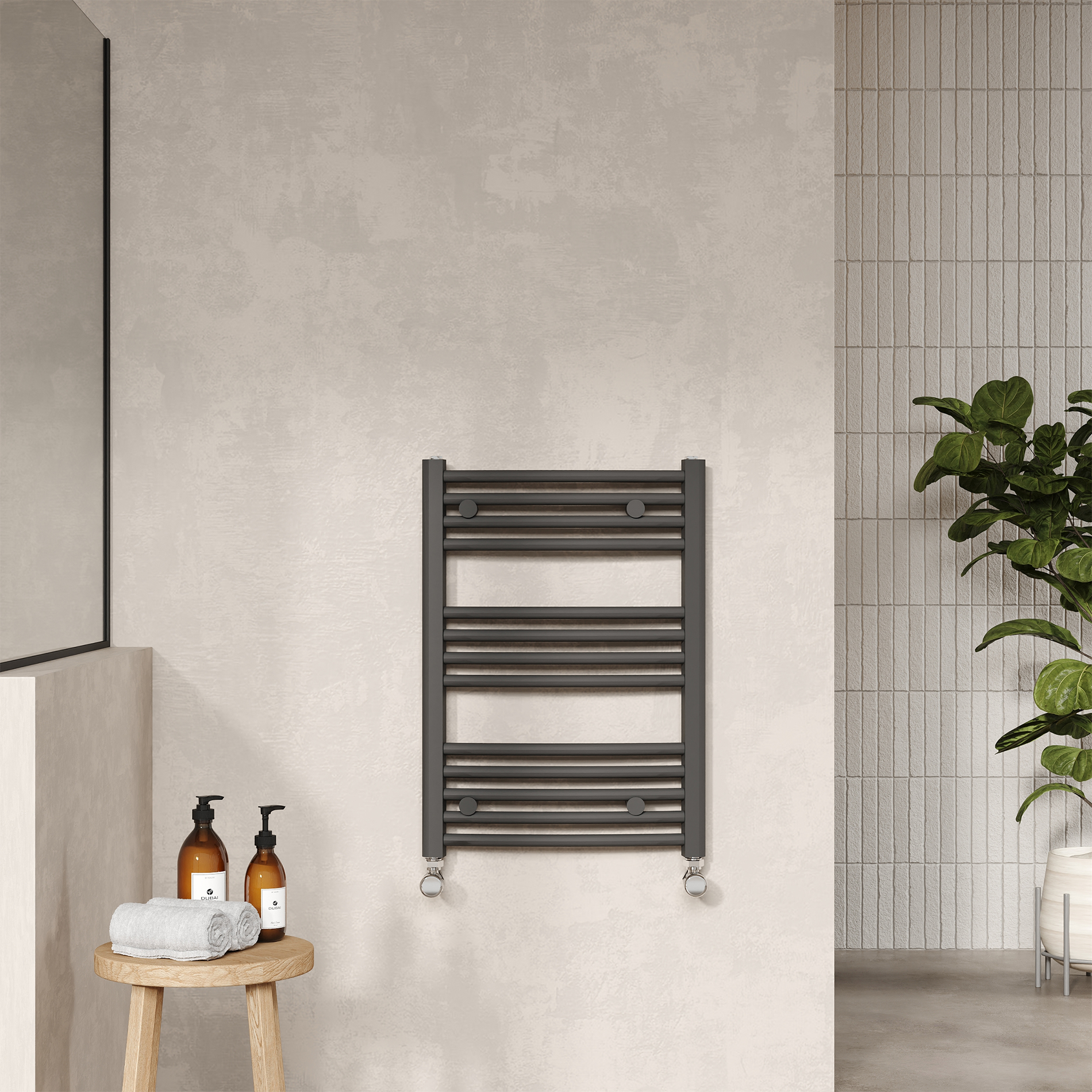 Nuie Steel Curved Heated Towel Rail with Brackets - 500mm Wide