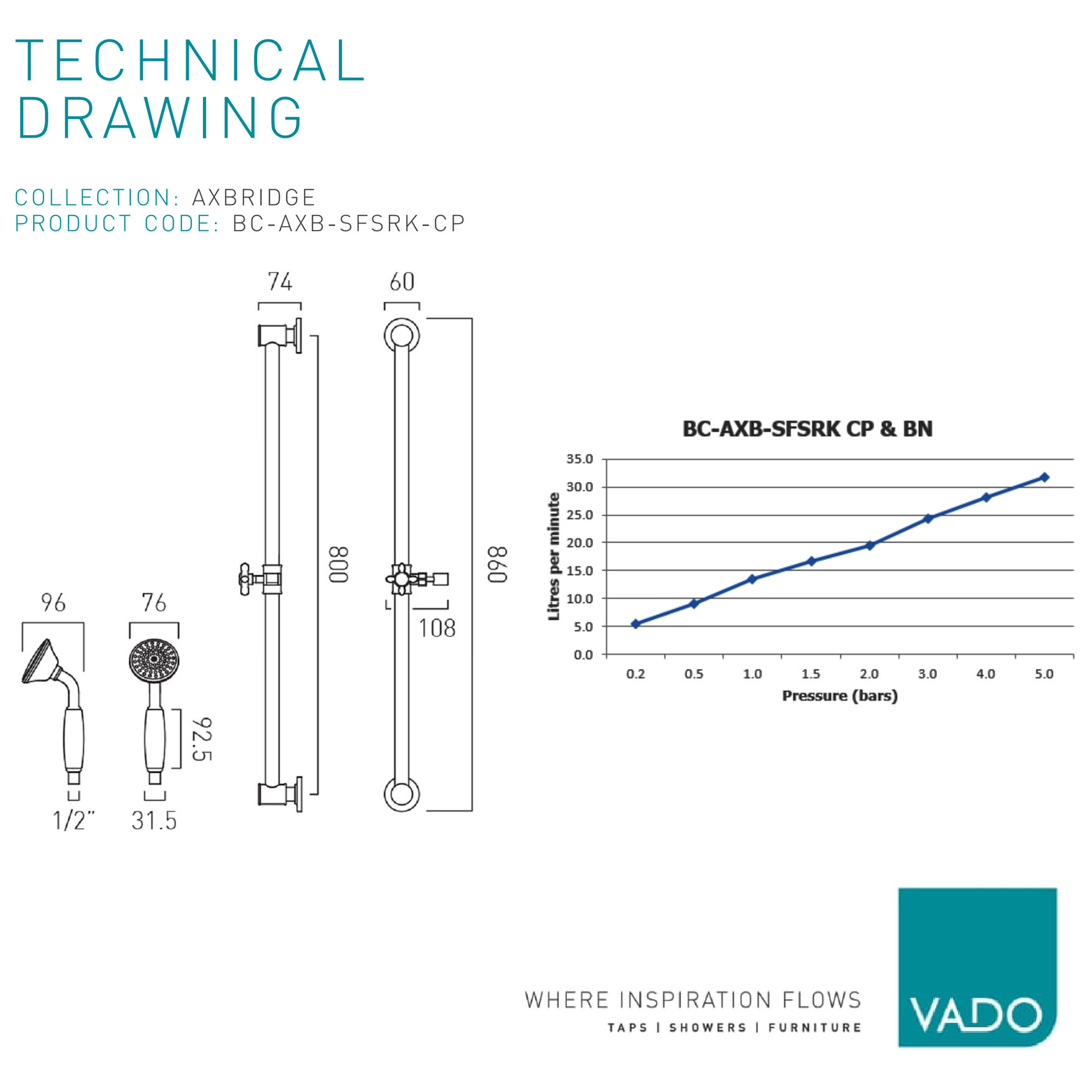 Vado Axbridge Traditional Slide Rail Kit with Single Function Handset and Hose
