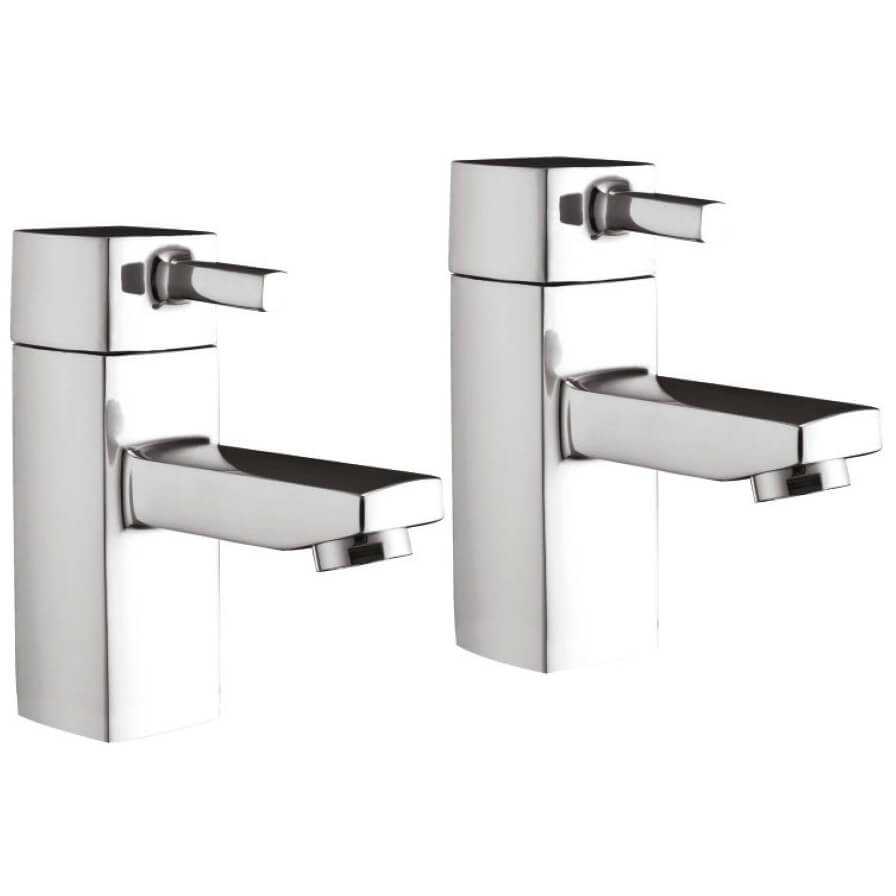 Joseph Miles Forme Pair of Chrome Basin Taps with Straight Spout - Stick Handles - Deck Mounted
