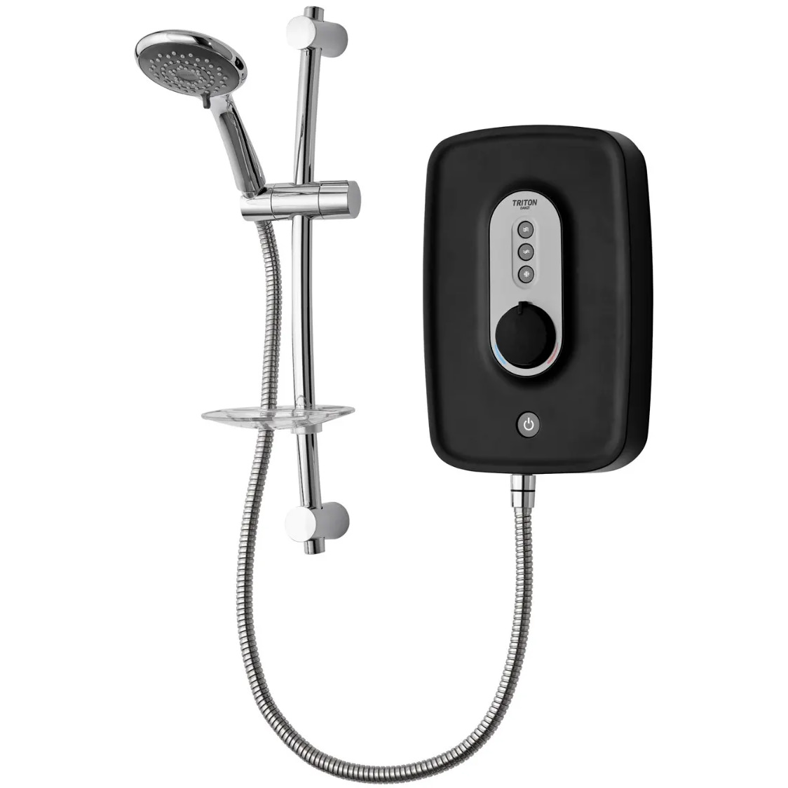 For a safe and powerful showering experience, install this Danzi Electric Shower from the renowned bathroom brand Triton. The practical White or Black finish creation looks attractive and blends with the other settings of the bathroom. The efficient in use electric shower features a phased shutdown facility, five spray pattern rub-clean shower head, separate temperature dial and power button controls, push start and stop control, and temperature stabilised control. Effortless in installation, this aqua delight is backed with a 2-year guarantee from the company.