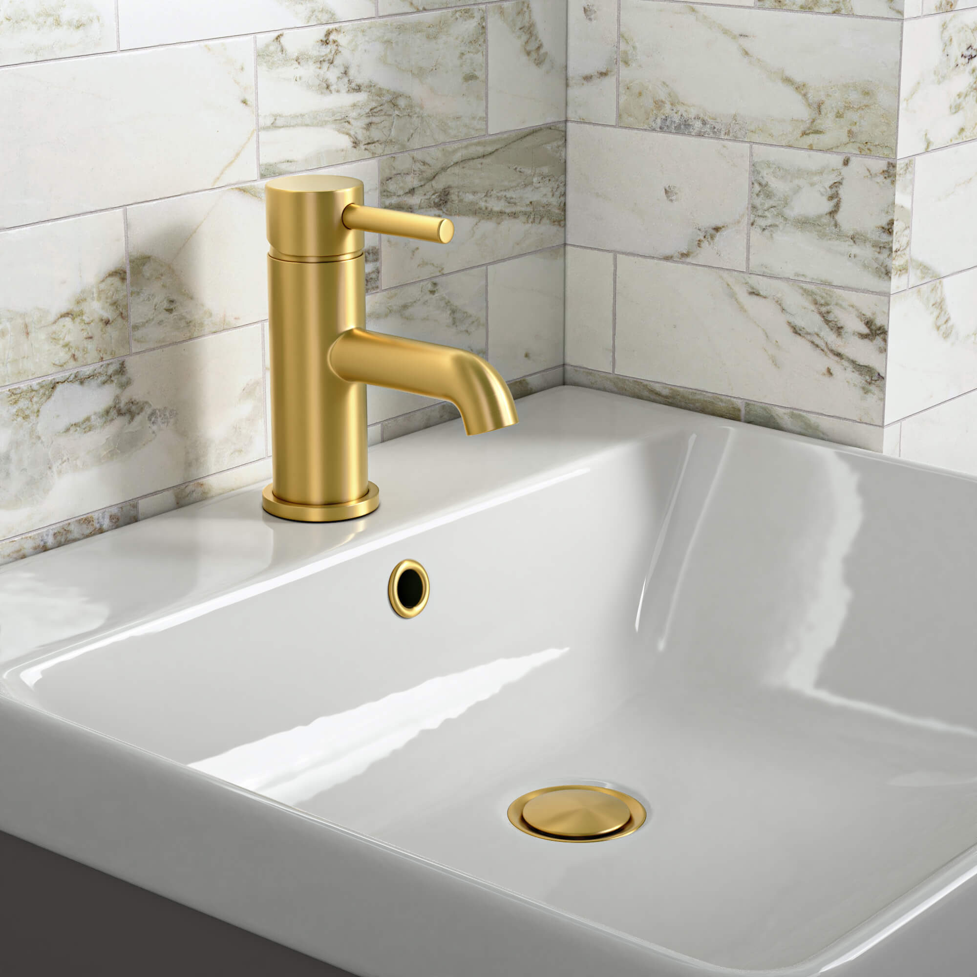 Joseph Miles Millie Monobloc Brushed Brass Basin Mixer Tap with Waste - Stick Handle - Deck Mounted
