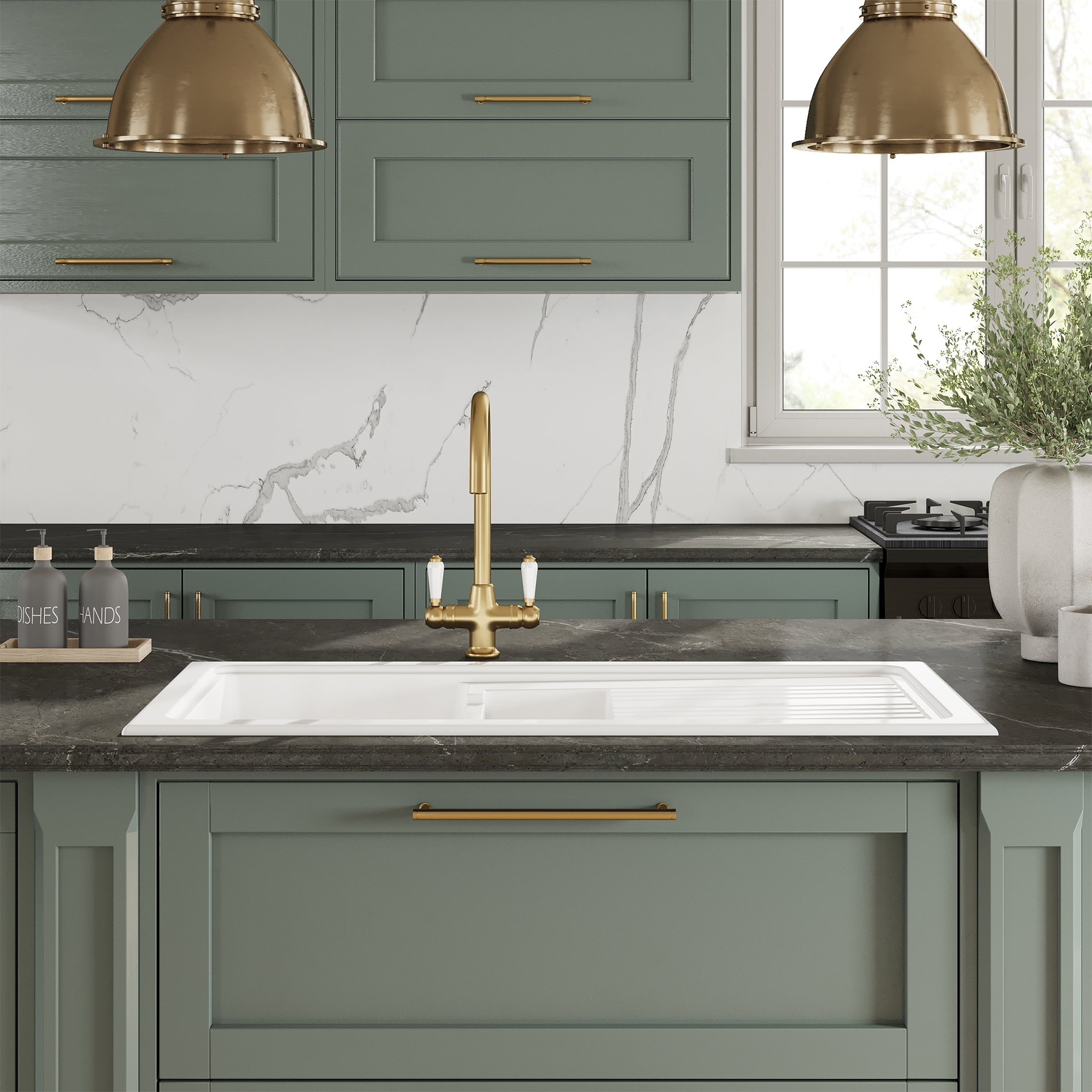 The Nuie Countertop 1.5 Bowl Fireclay Inset Kitchen Sink displays exceptional ergonomics and functionality to deliver a truly innovative solution for various kitchen applications. It presents spectacular visuals with its straight, square edges, giving it a crisp but easy-clean look. It can easily complement any modern kitchen design. It is fabulously fashioned in a white finish, a durable and versatile material, offering a host of aesthetic and practical benefits. It comes with a smooth, non-porous glaze that gives it a robust, hard-wearing surface-simply run your hands over it to know what we mean. It comes with a 10-year guarantee from Nuie against manufacturing defects.