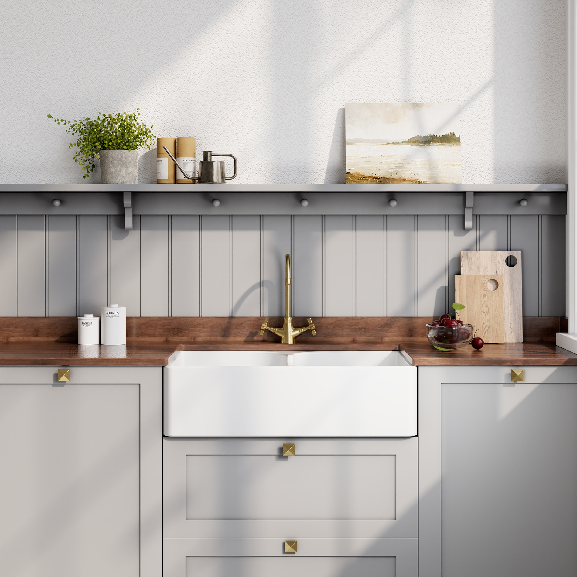 Nuie Butler Traditional Fireclay Inset Kitchen Sink 759 x 500mm - Double Bowl