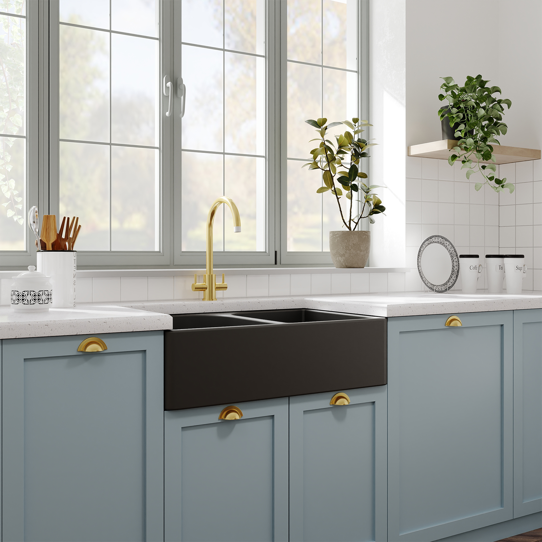 A true toughie, it satisfies the highest levels of durability and hygiene. The sink is sturdy and made using traditional fire clay methods to provide optimum user benefits and easy maintenance. Team it with a black kitchen tap to give your kitchen sink an elegant look.