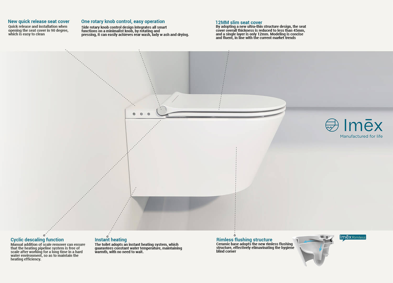 Imex Essence Back To Wall Rimless Smart Toilet with Soft Close Seat - White