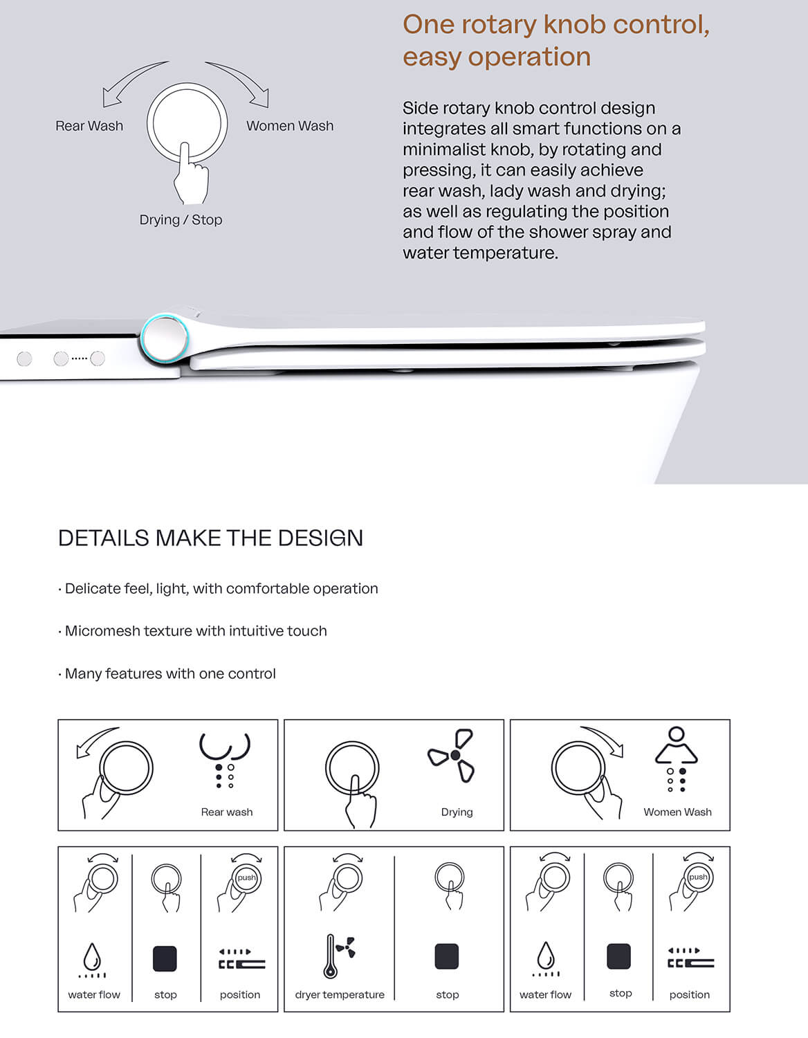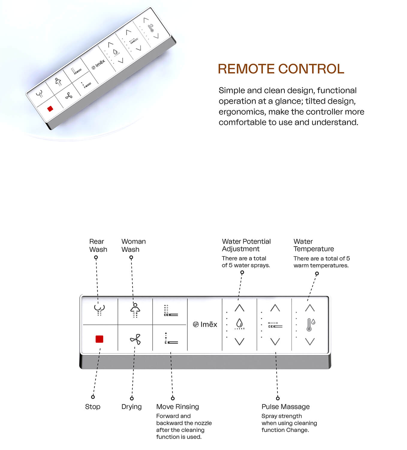 • Rear Wash, Woman Wash and Comfort Wash Functions