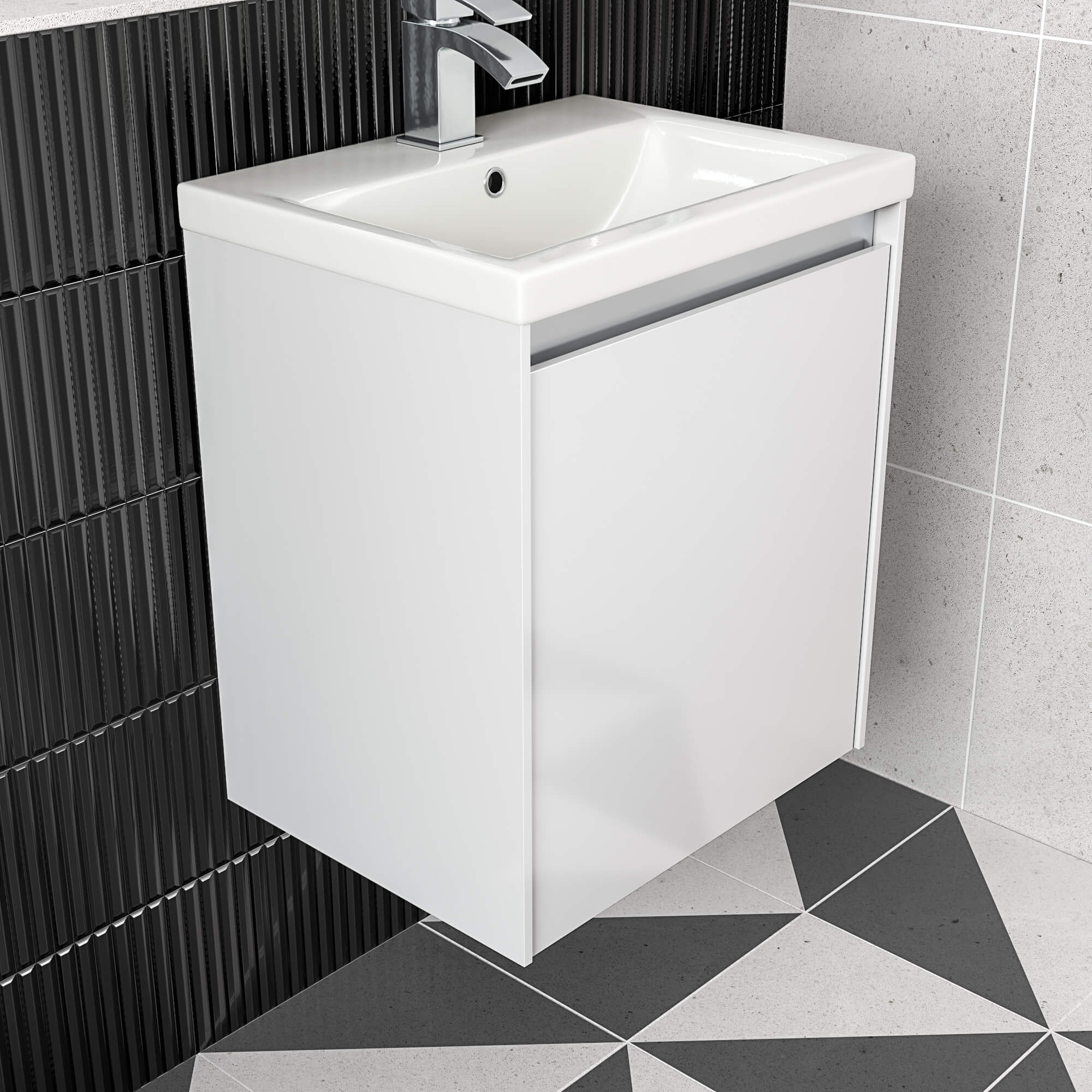 QS Basics Urban Wall Hung Vanity Unit with Basin - 500 x 550mm - 1 Drawer
