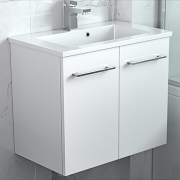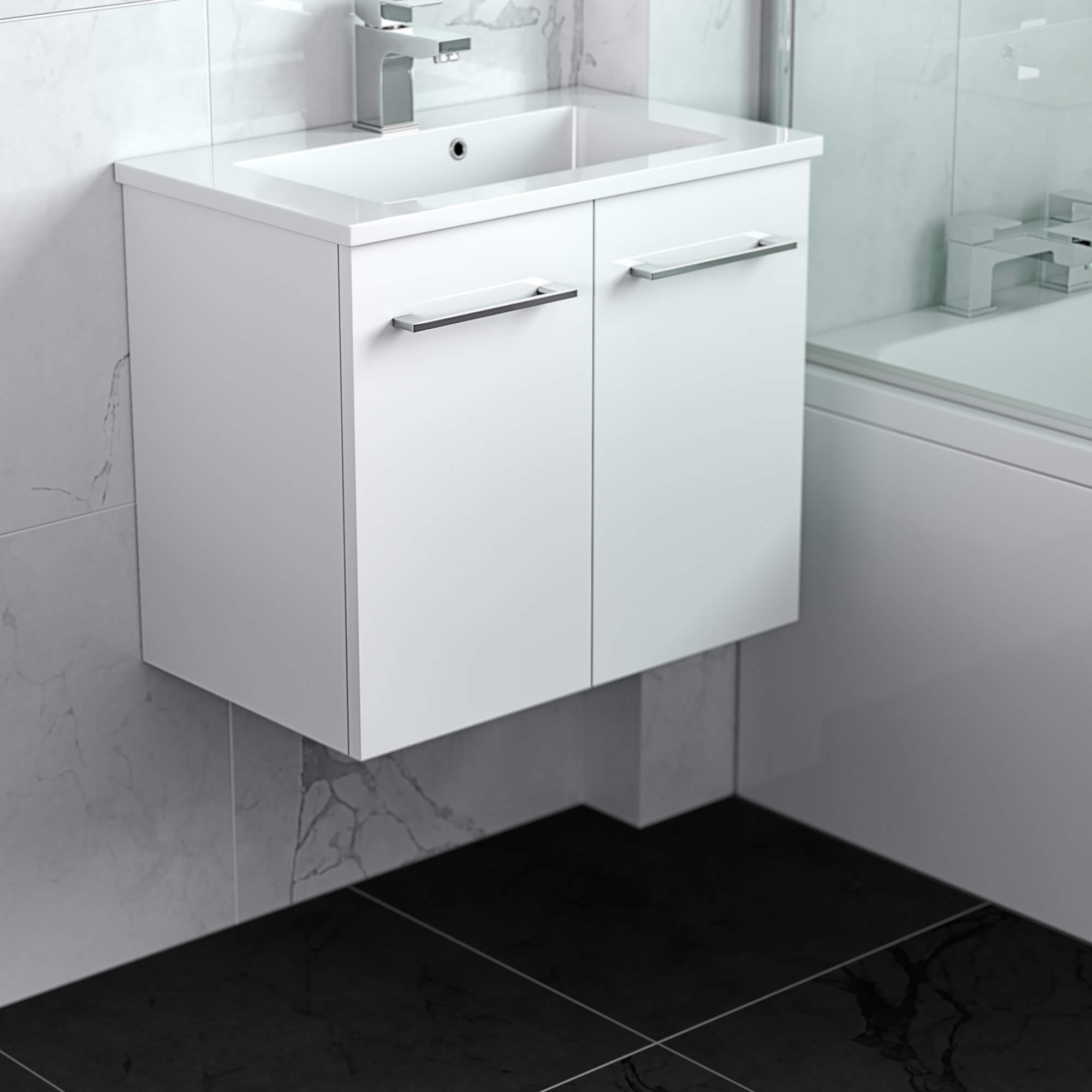 QS Basics Tempo Wall Hung White Vanity Unit with Basin - 600 x 500mm - 2 Door