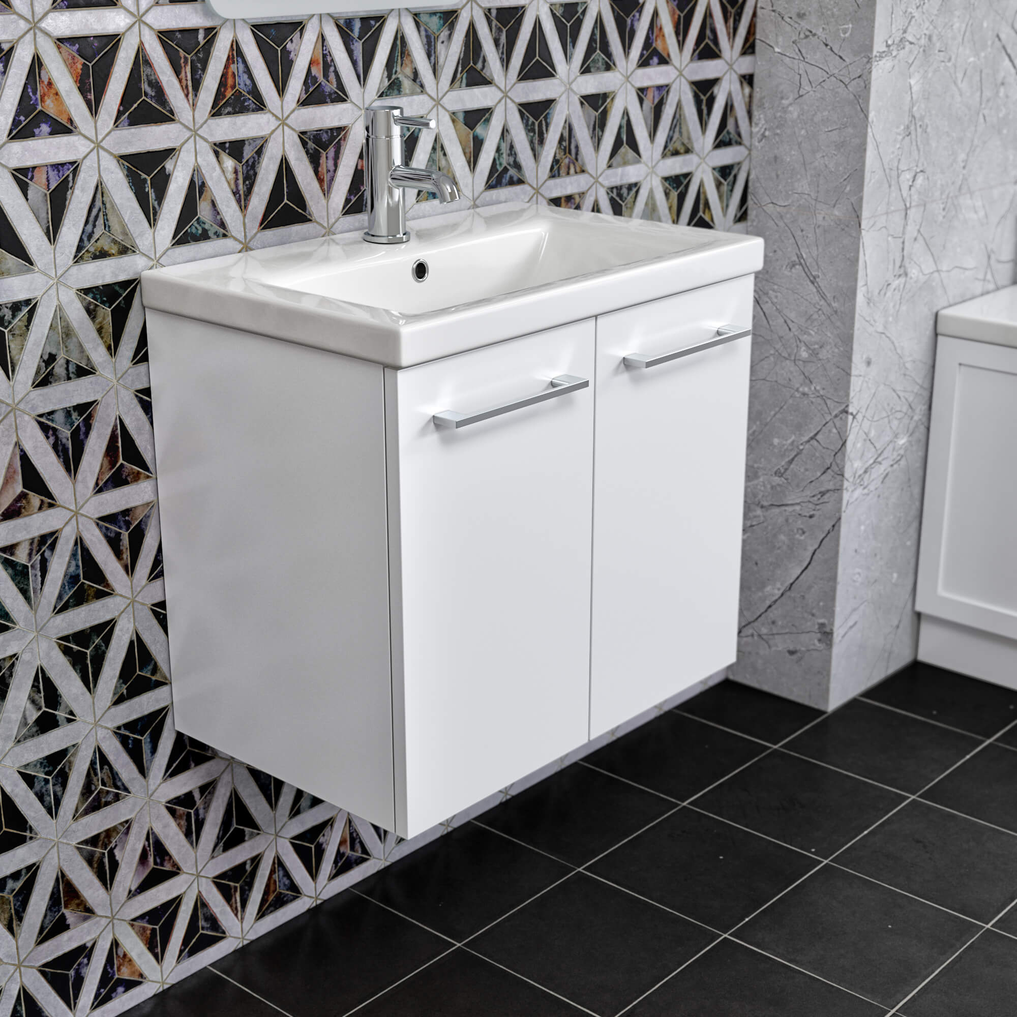 QS Basics Tempo Wall Mounted Undercounter Vanity Unit with Basin 590 x 500mm - Two Door