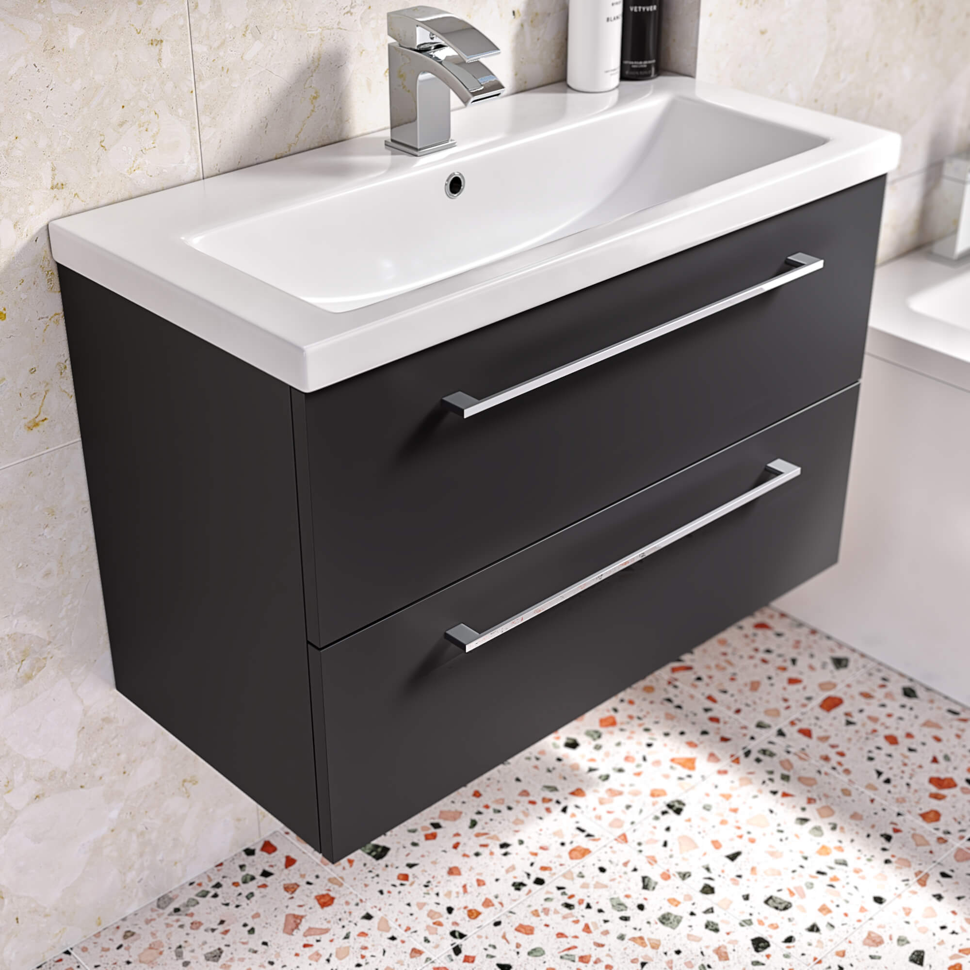 QS Basics Tempo Wall Mounted Vanity Unit with Inset Basin - 800 x 500mm - 2 Drawers