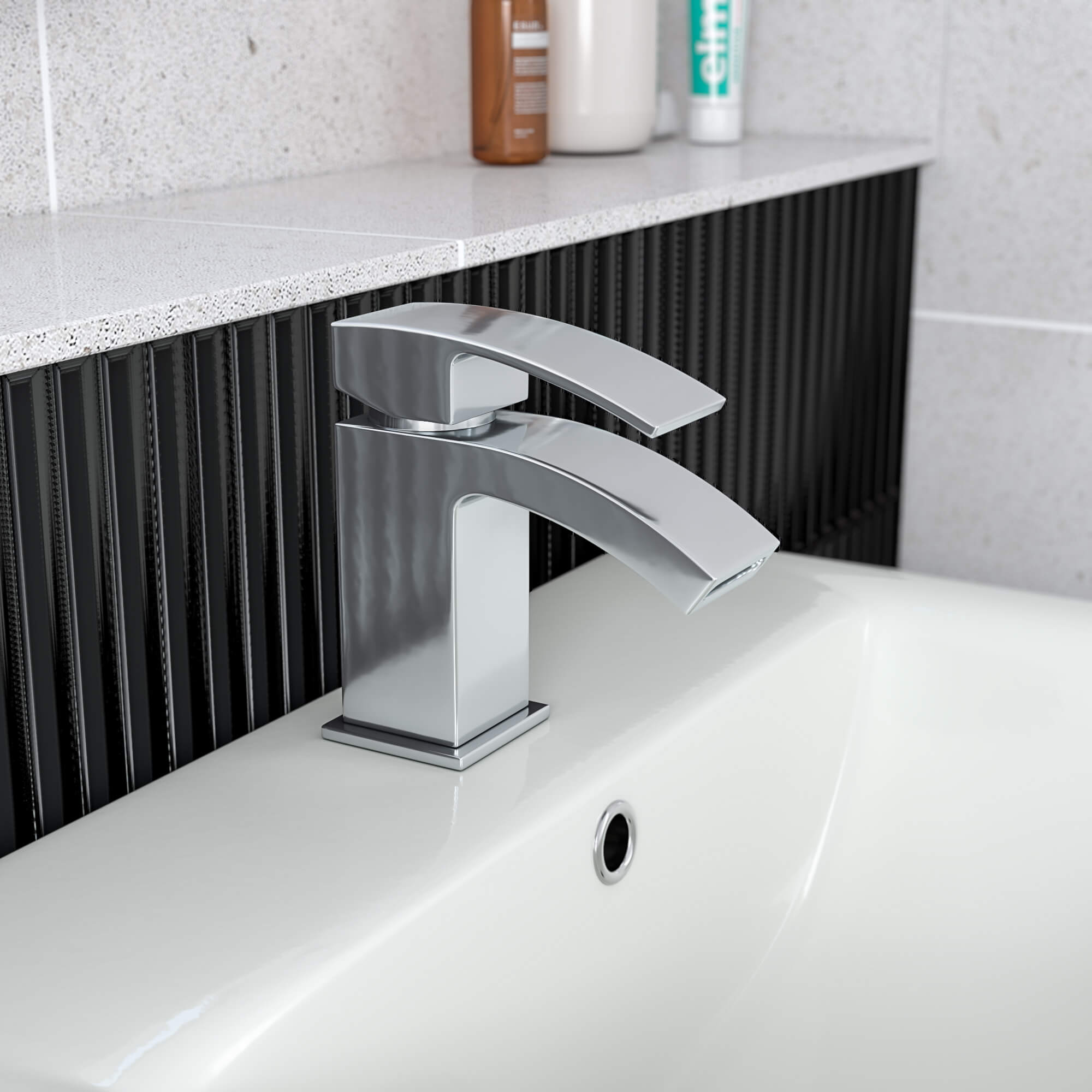 QS Basics Amelia Monobloc Chrome Basin Mixer Tap with Waterfall Spout and Click Waste