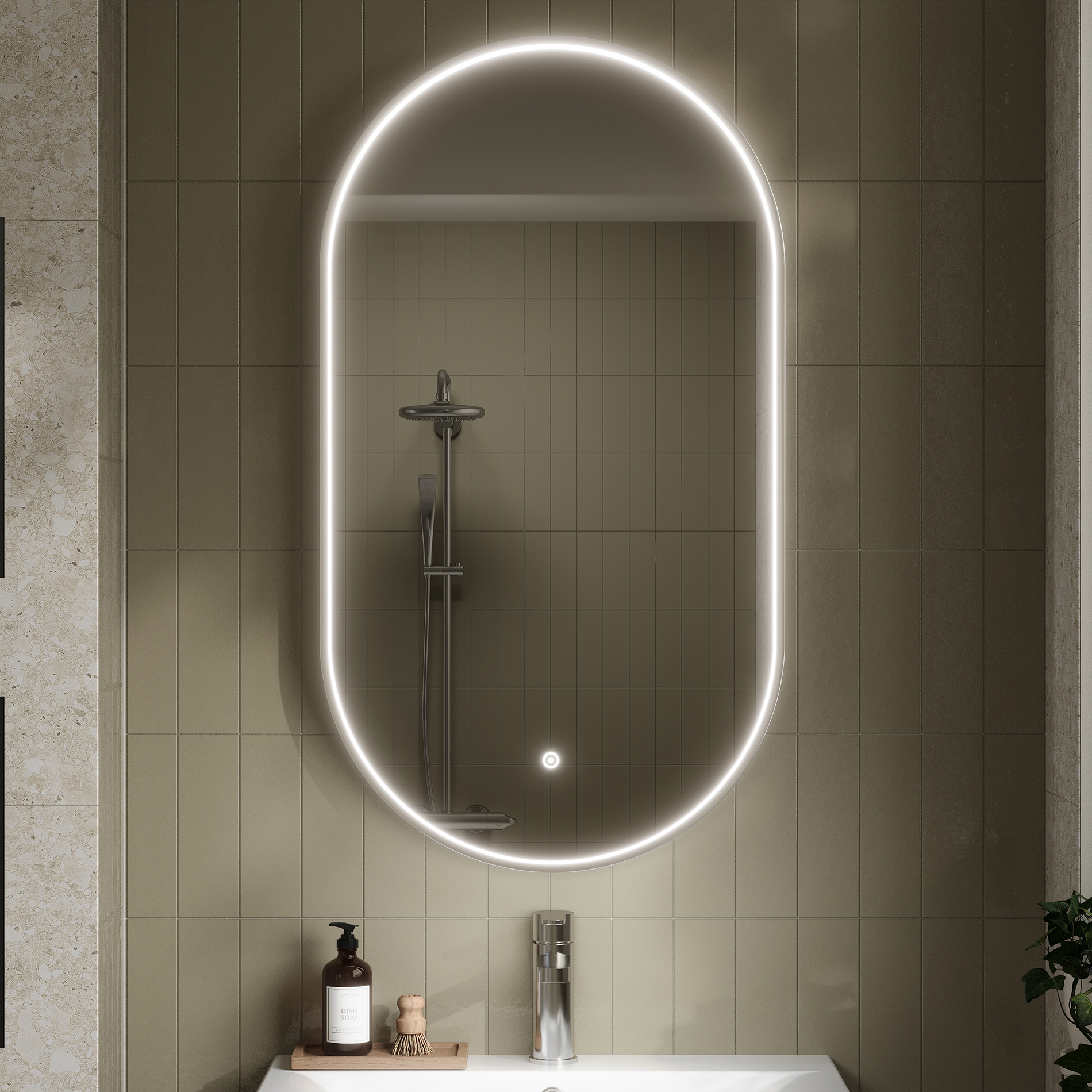 Hudson Reed Columba Oval LED Mirror with Demister Pad 500 x 800mm - Aluminium Frame
