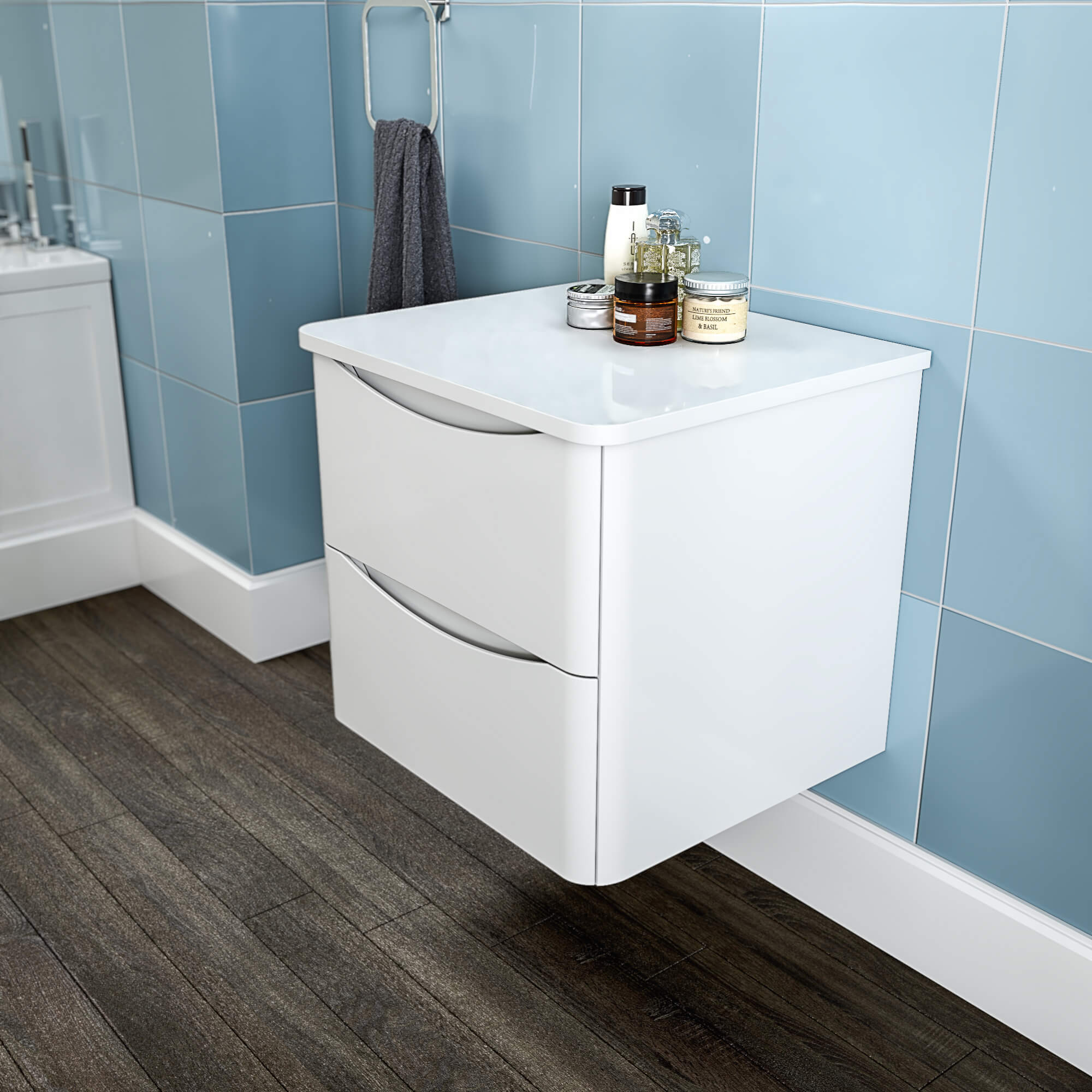 Joseph Miles Bella Handle-Less Wall Hung Countertop Vanity Unit 450mm High - Two Drawer.