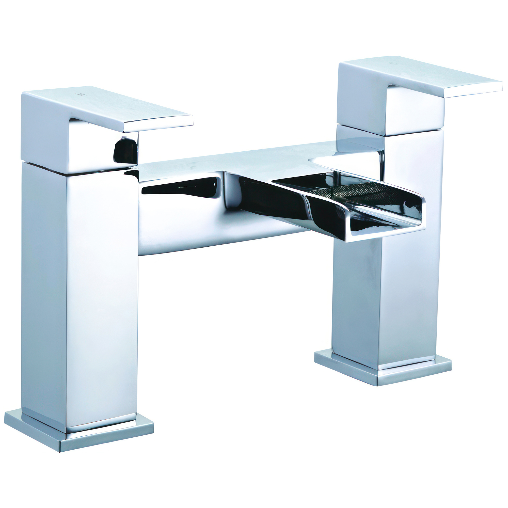 Lecico Victoria Chrome Finish Square Bridge Bath Mixer Tap with Waterfall Spout - Flat Handles
