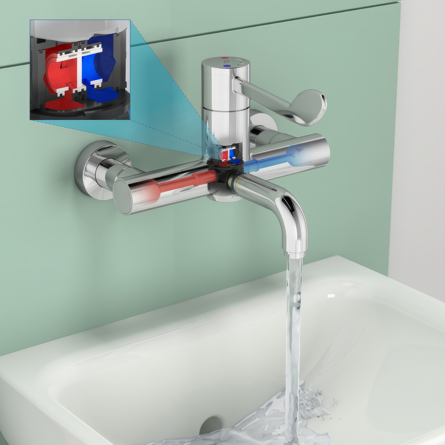 • Ceramic Pressure Balance Valve with Smooth Hygienic Surfaces