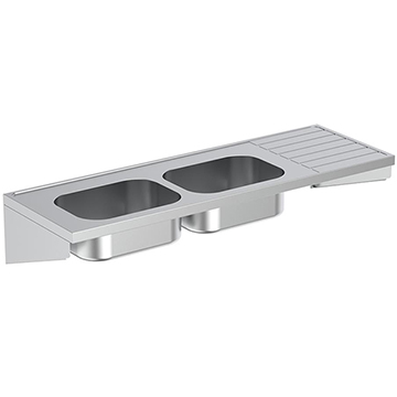 Armitage Shanks Doon Stainless Steel Double Bowl with Drainer - Wall Mounted.