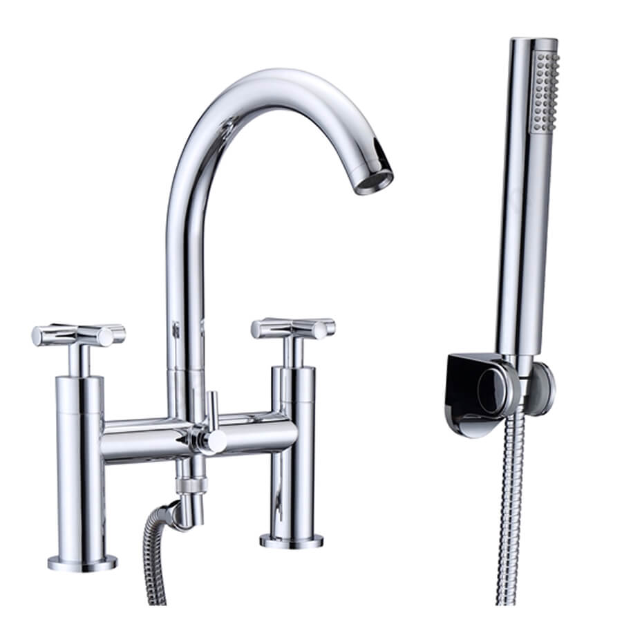 RAK Ella 2 Hole Traditional Chrome Bath Filler Tap with Arc Spout - Crosshead Handles - Deck Mounted