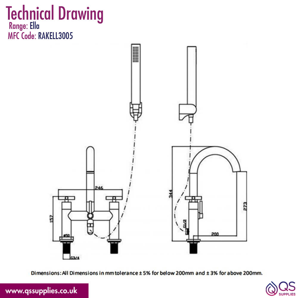 • Specifications of Bath Mixer with Kit: