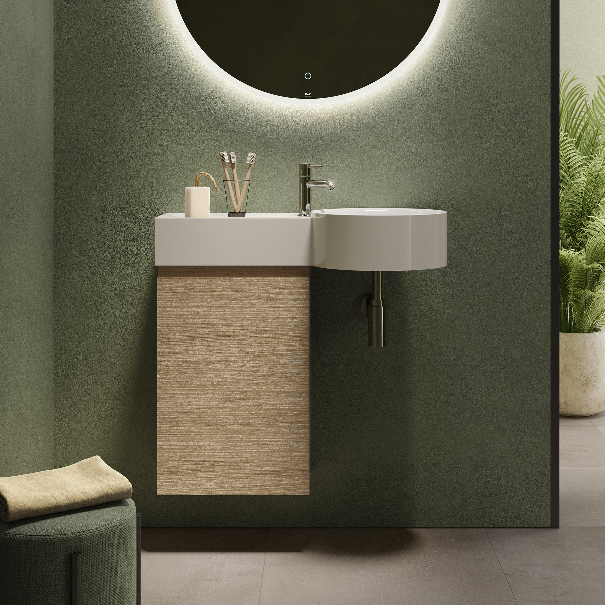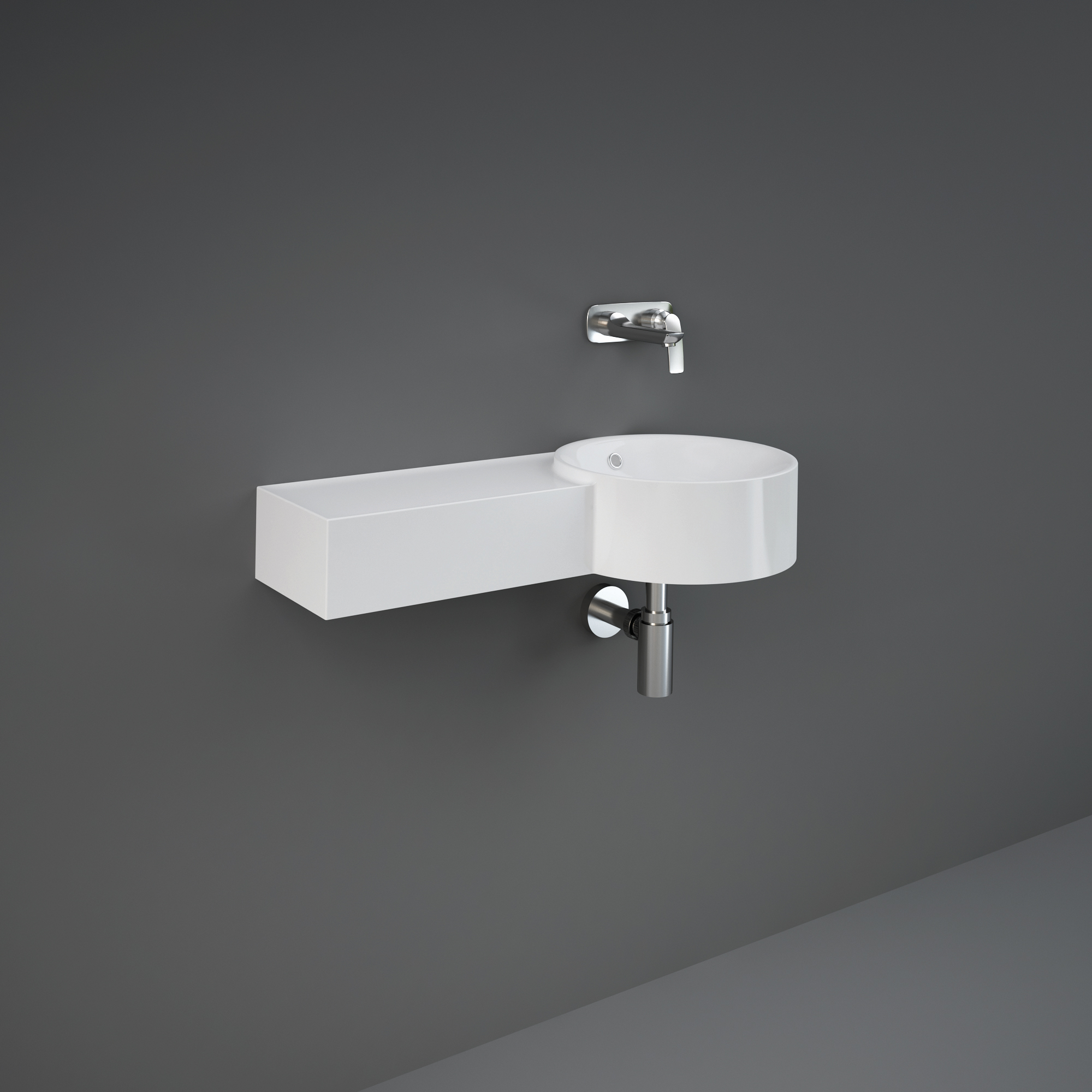 RAK Petit Round Alpine White Wall Hung Basin with Ledge - 765 x 360mm