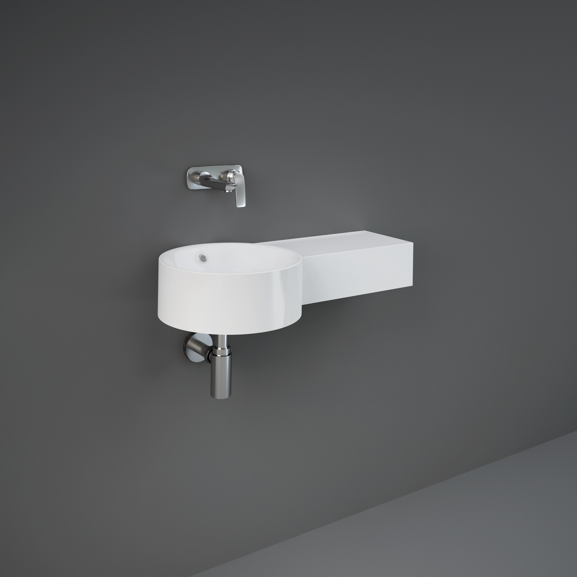 RAK Petit Round Alpine White Wall Hung Basin with Ledge - 765 x 360mm.