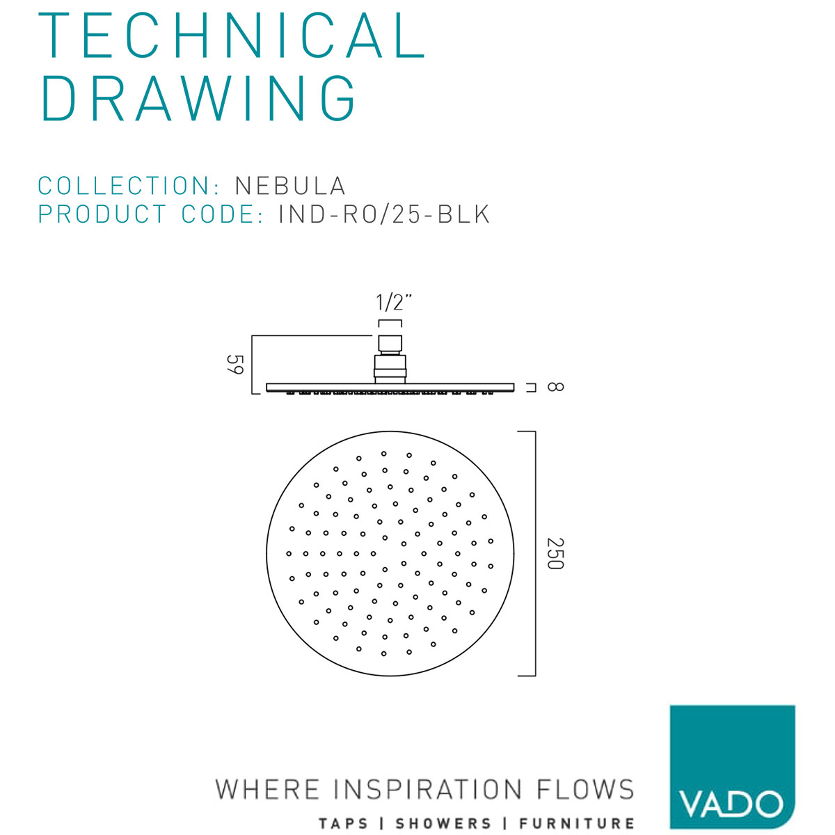 Vado Individual Nebula Round Easy Clean Single Function Shower Head 250 x 250mm.