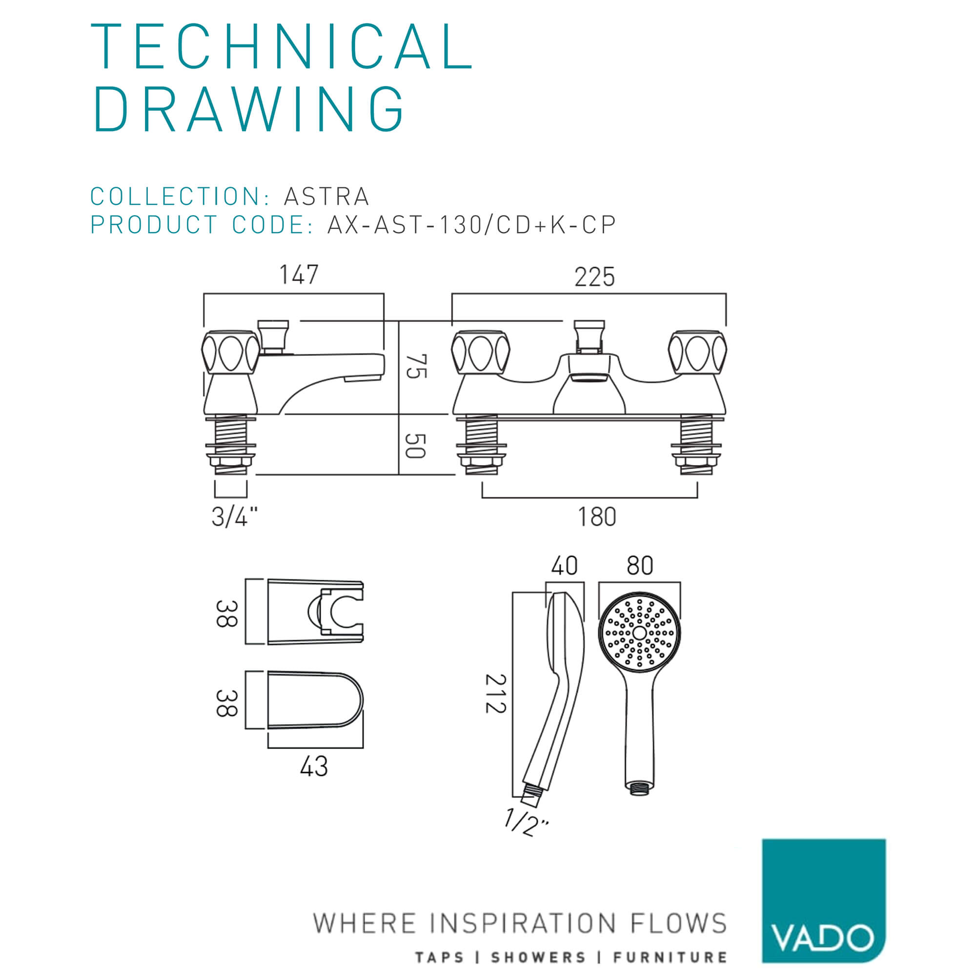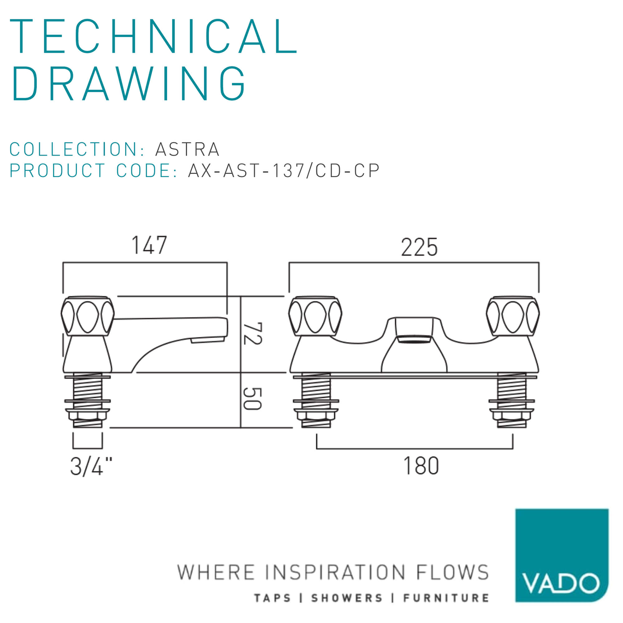 Vado Astra Contemporary Chrome Finish Bath Mixer Tap - Deck Mounted