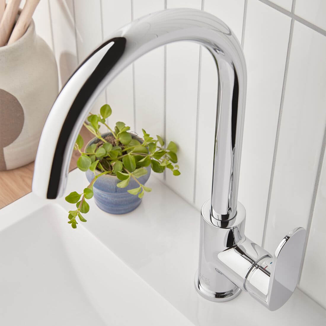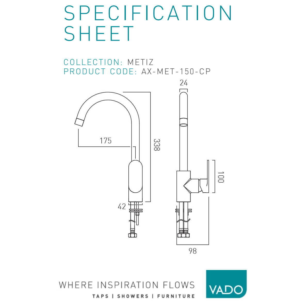 Vado Metiz Chrome Mono Kitchen Sink Mixer Tap with Curved Swivel Spout - Lever Handle
